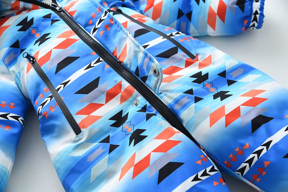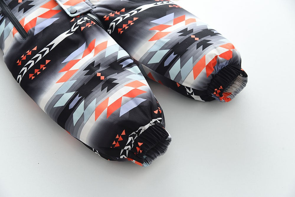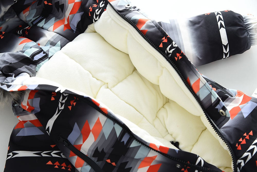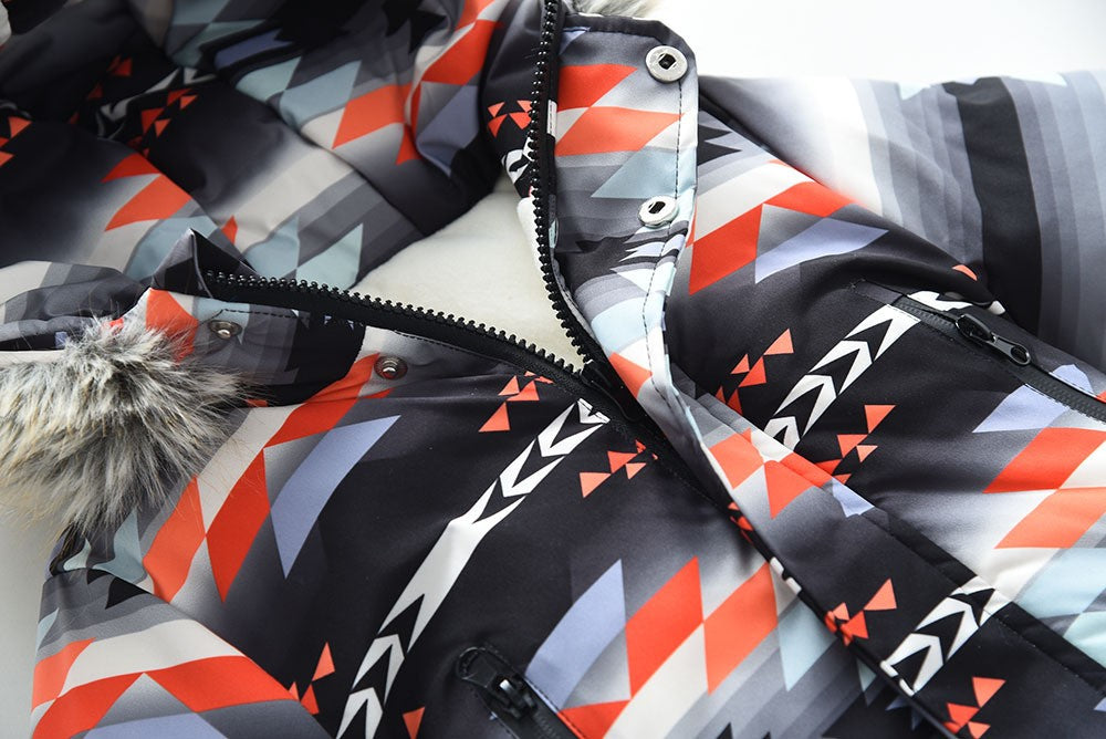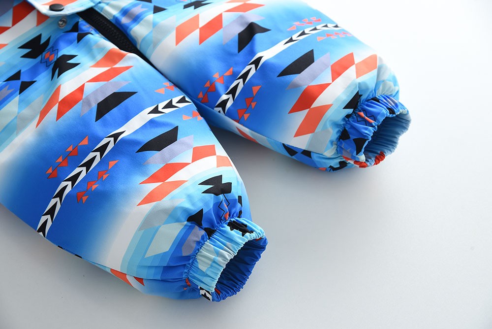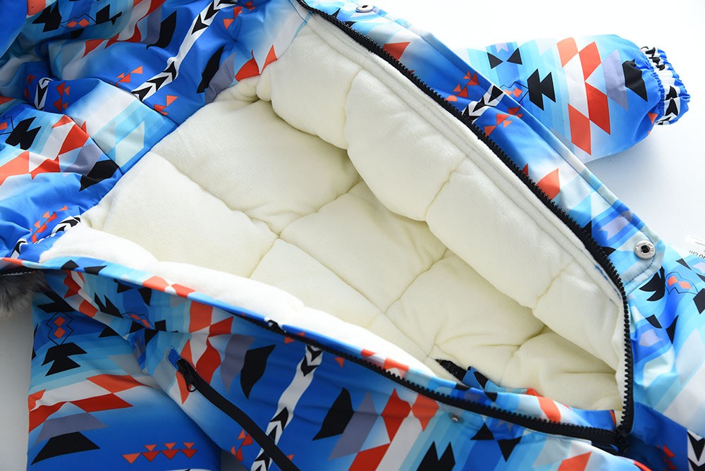YBFSKID Kids Boys Winter Rompers Geometric Pattern Plush Thick Toddler Baby Boys Ski Suit Fur Collar Little Boys Jumpsuit Outfit