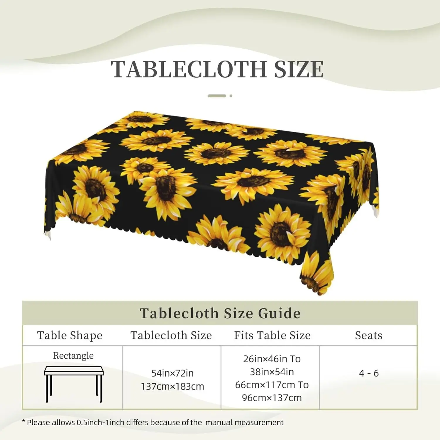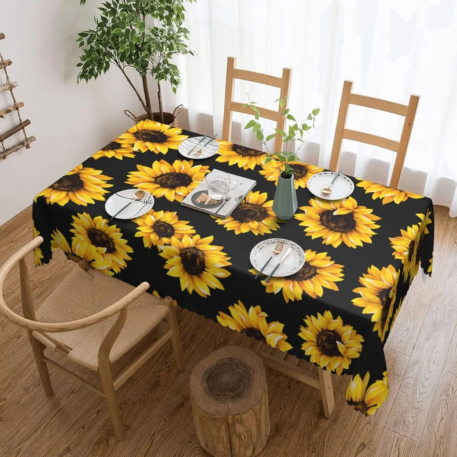 Yellow Black Sunflower Floral Rectangle Tablecloth Table Decor Reusable Farmhouse Kitchen Dining Table Runner Party Decorations