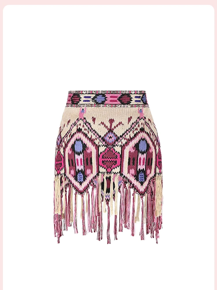Featuring a unique flowing tassel element, this skirt adds a touch of bohemian charm to any casual outfit.