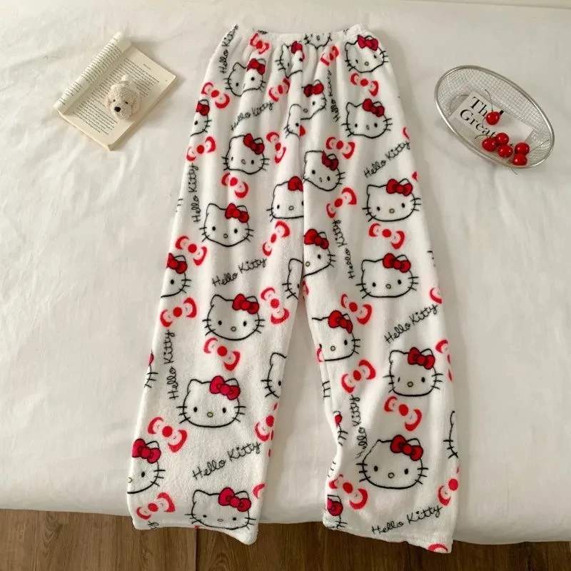 Yuguigou Flannel Sleeping Pants For Women Thickened Coral Fleece Pants For Autumn And Winter Cute Student Warm Plush Home Pant
