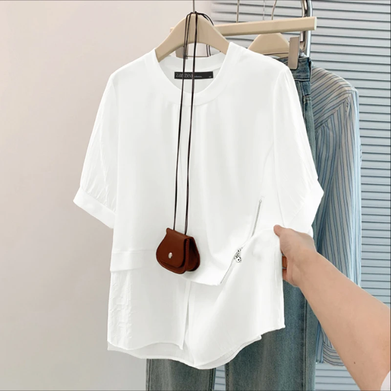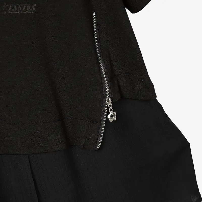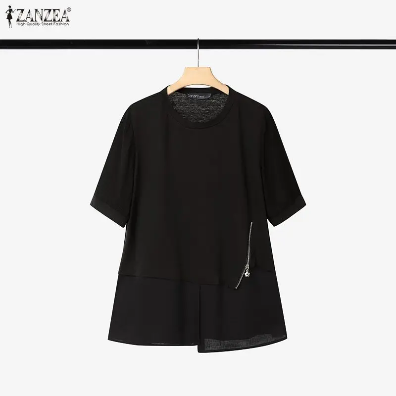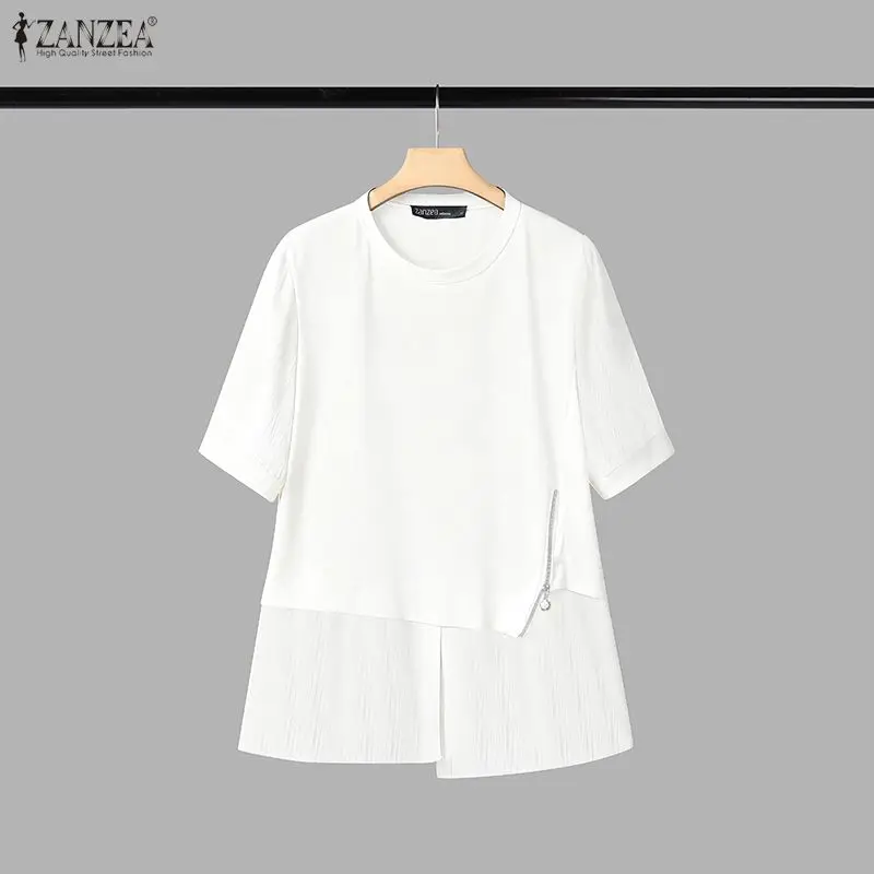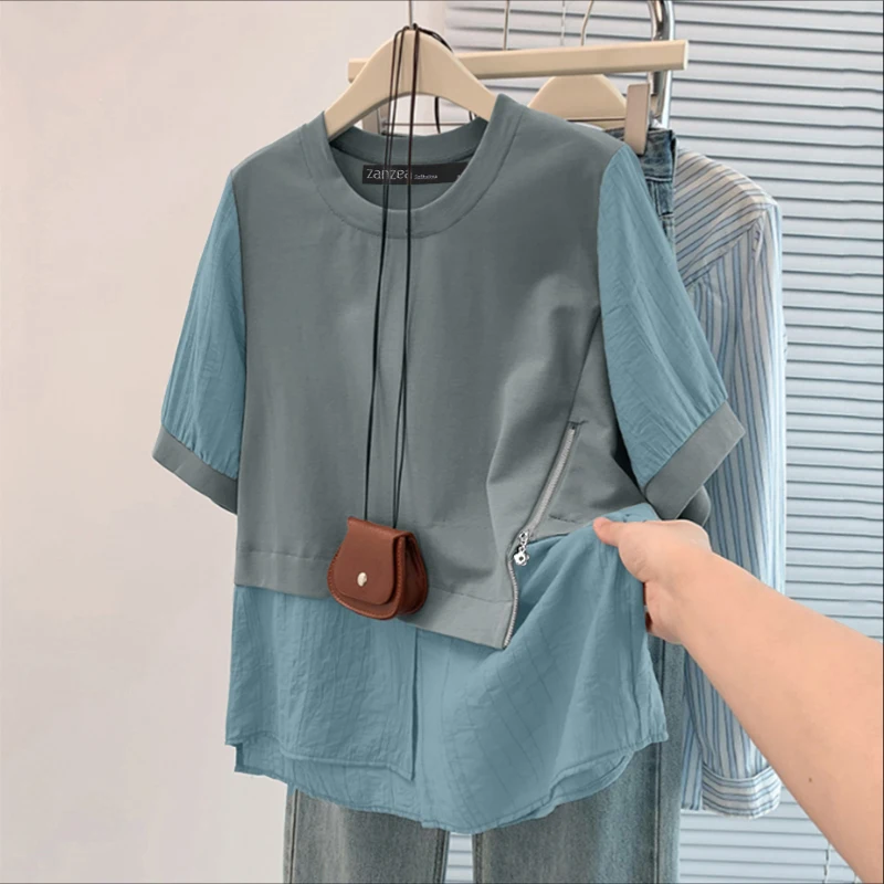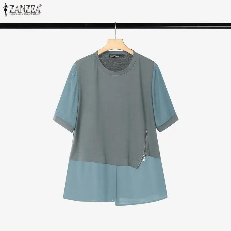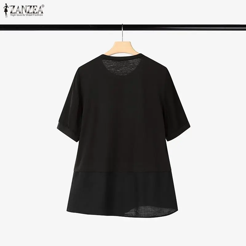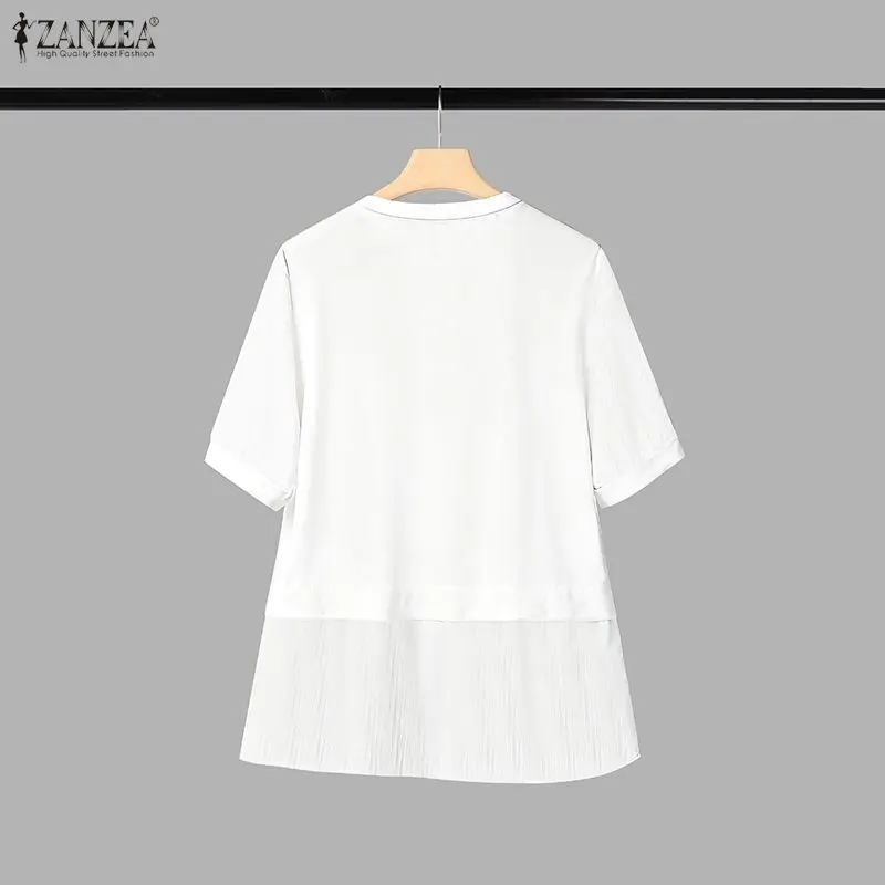 ZANZEA Women Summer Patchwork Blouse 2025 Casual O Neck Short Sleeve Tops Blusas Fashion Elegant Work Shirt Mujer Female Chemise