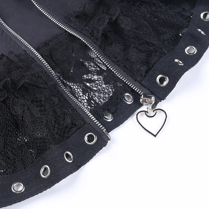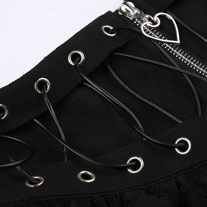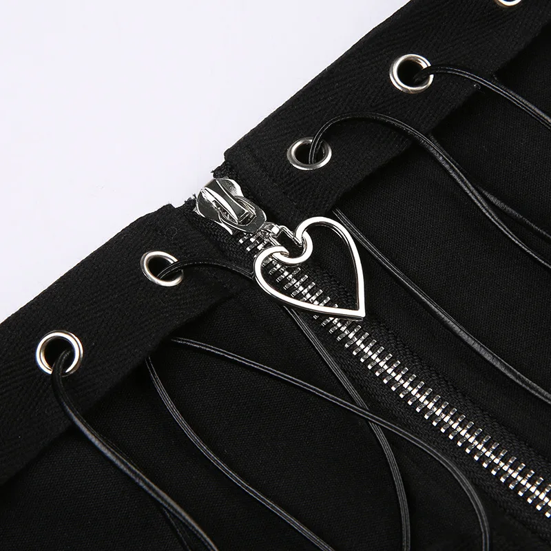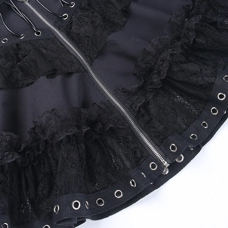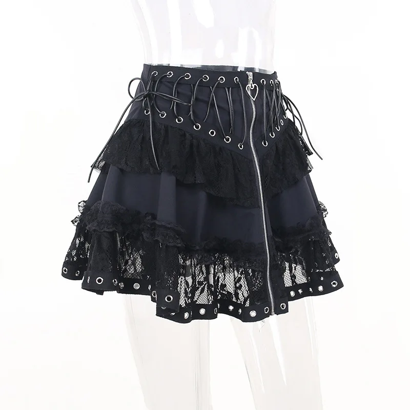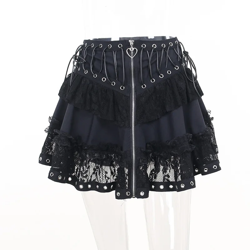 Zipper Front Women's Punk Vintage High Wasit Skirt Japanese Style Kawaii Black Harajuku Gothic Skater Cosplay Mini Skirts