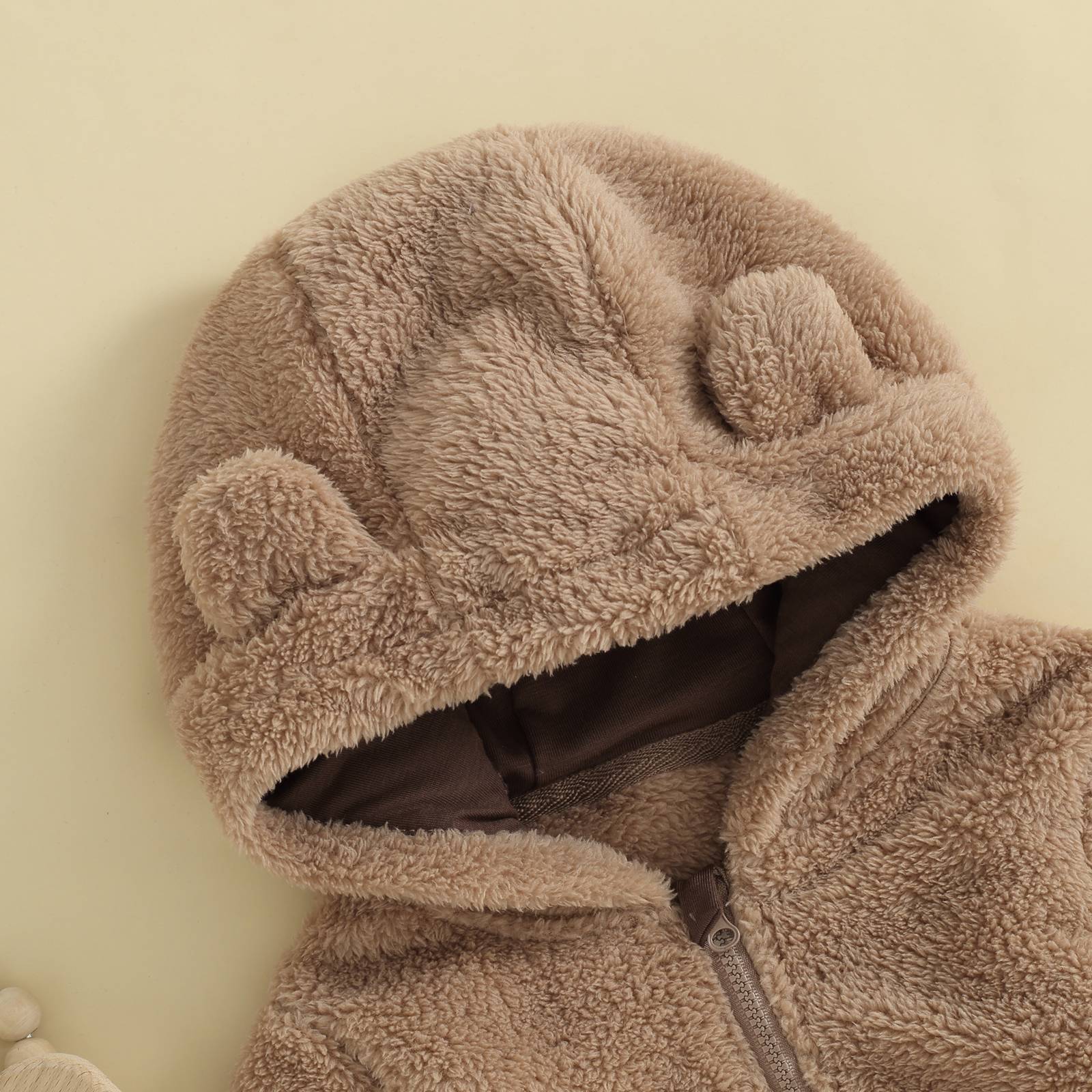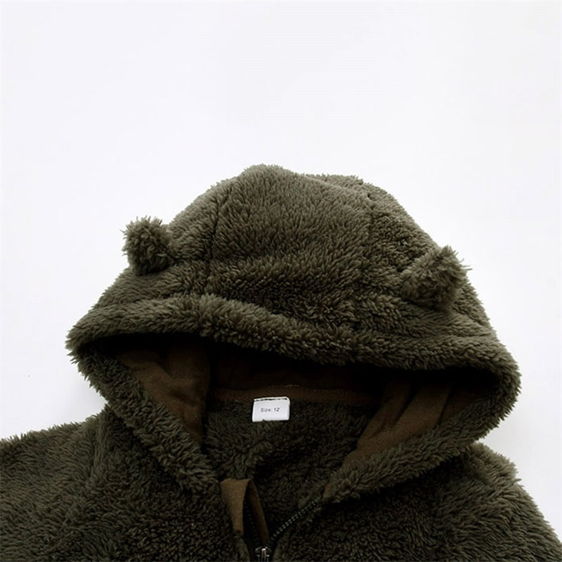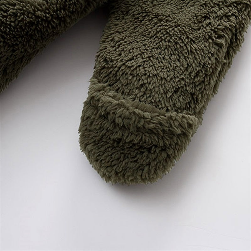 0-12M Baby Plush Warm Jumpsuits Boys Girls Long Sleeve Hooded Zipper Romper Newborn Infant Fall Winter Clothes