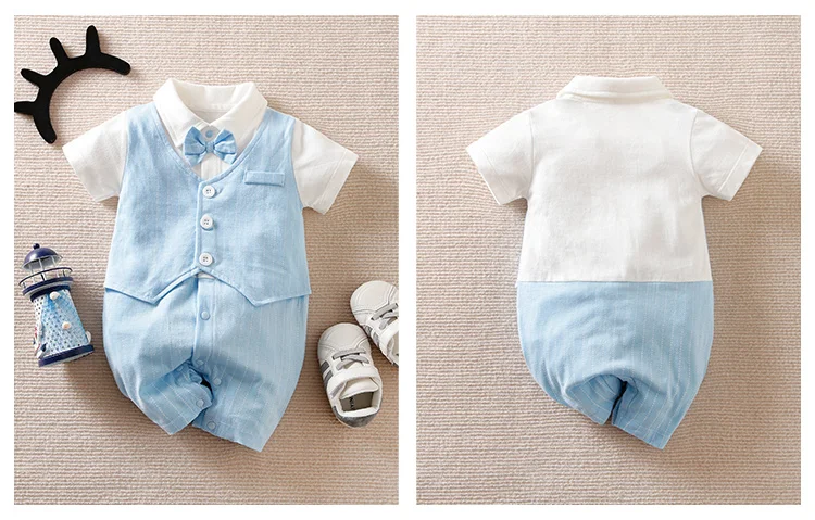 0-18 Baby Bodysuit Gentleman Style Handsome Formal Cotton Comfortable Soft Boys And Girls Summer Short Sleeved Newborn Clothes