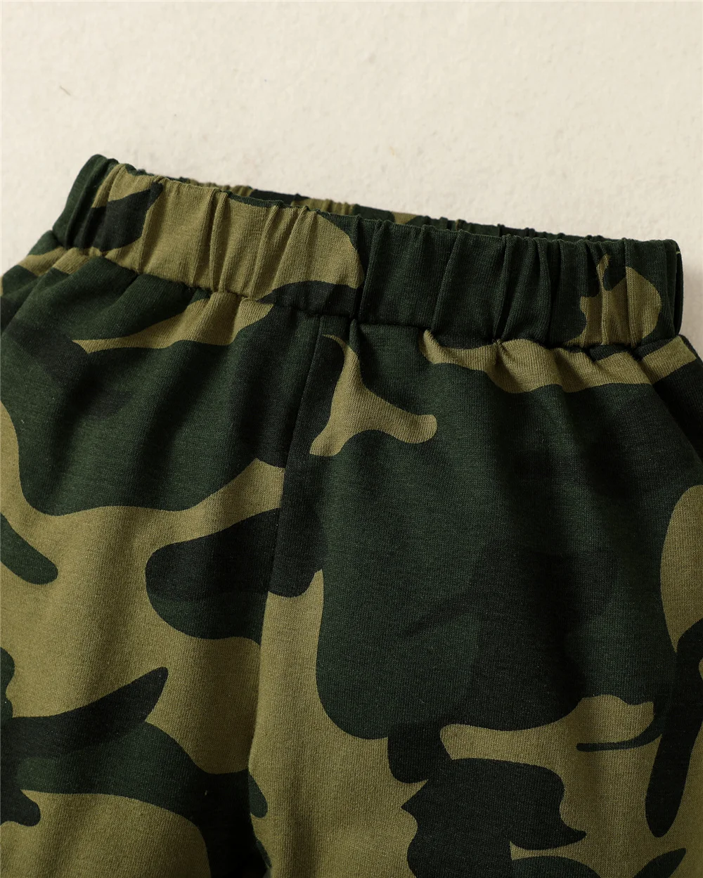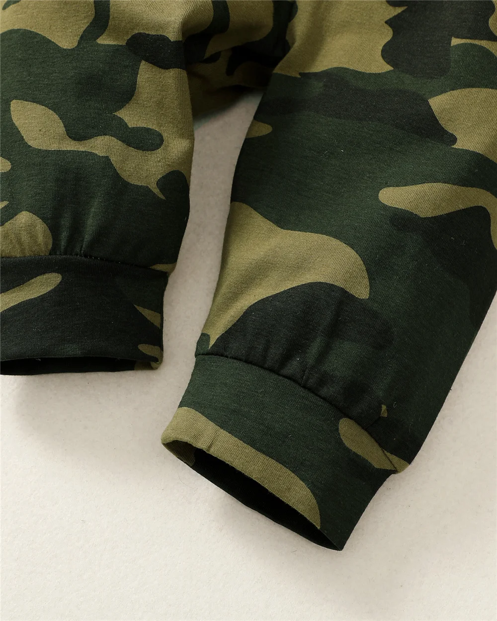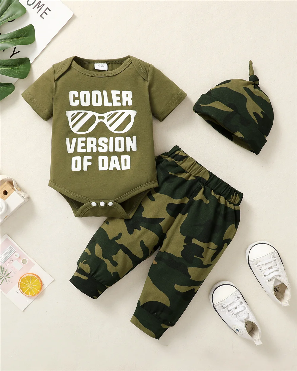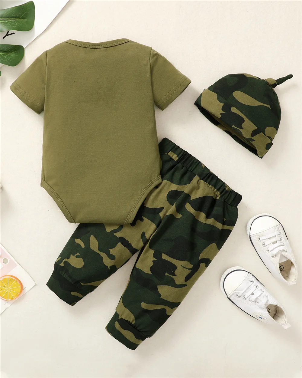 0-18 Months Newborn Baby Boy 3PCS Clothes Set Letters Print Short Sleeve Romper + Camouflage Pants with Hat Casual Outfit