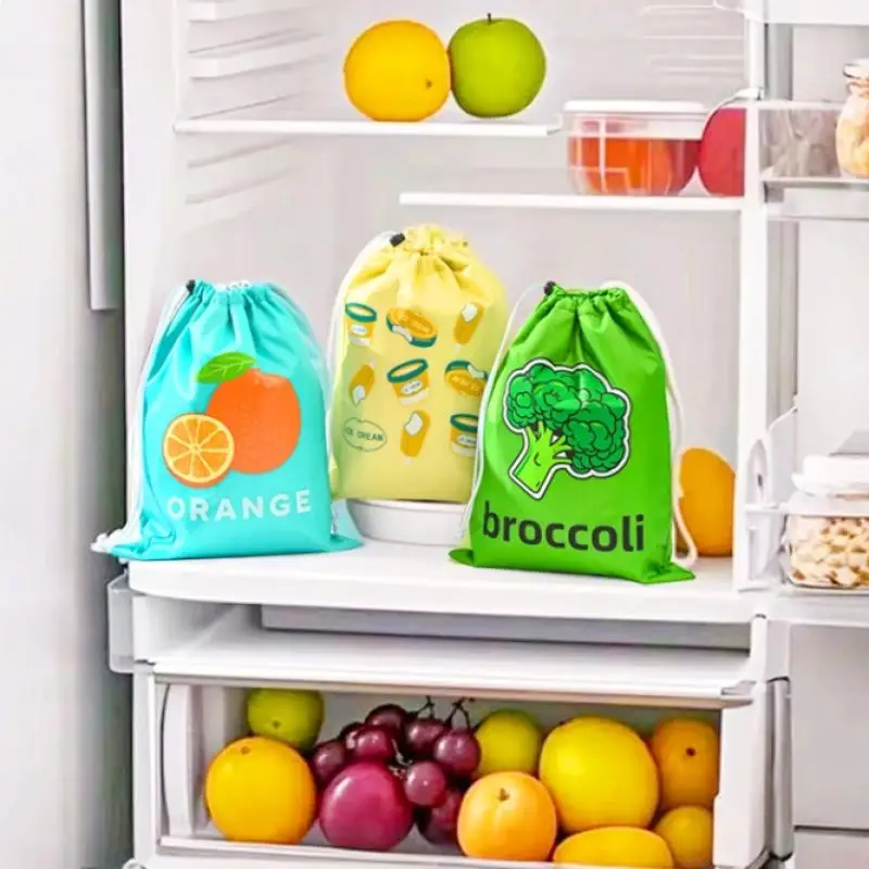 1/3pcs Reusable Shopping Bags Vegetable Fruit Lemon Preservation Bag Storage Bag Shockproof Drawstring Bag Multipurpose Portable