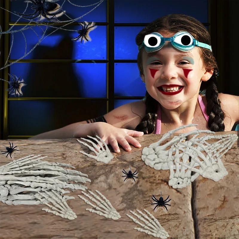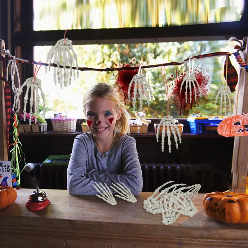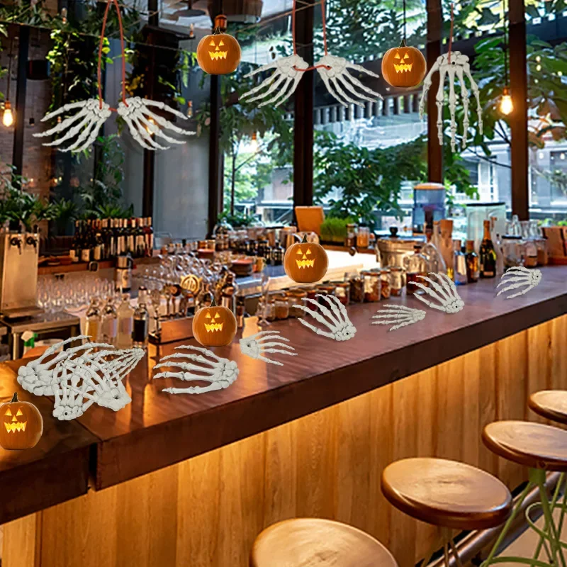 1 Pair Of Halloween Skeleton Hands Haunted House Bar Party Plastic Horror Props Dummy Hands Bones Halloween Scene Decor Supplies