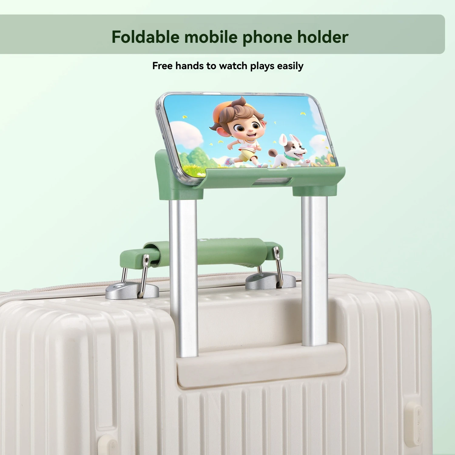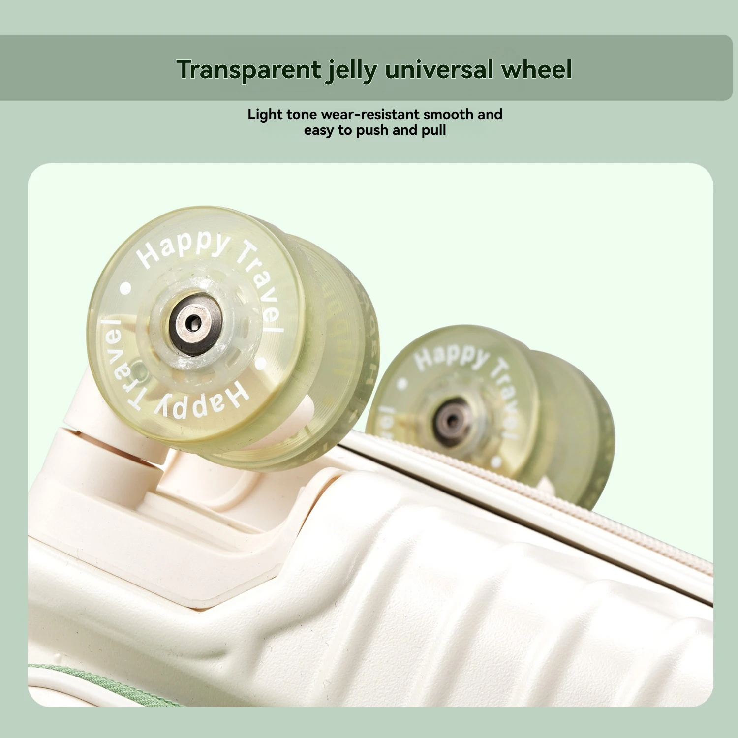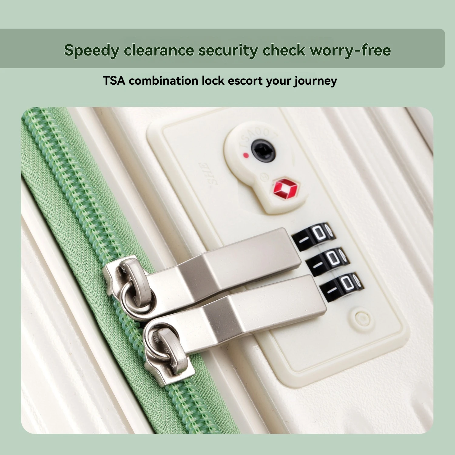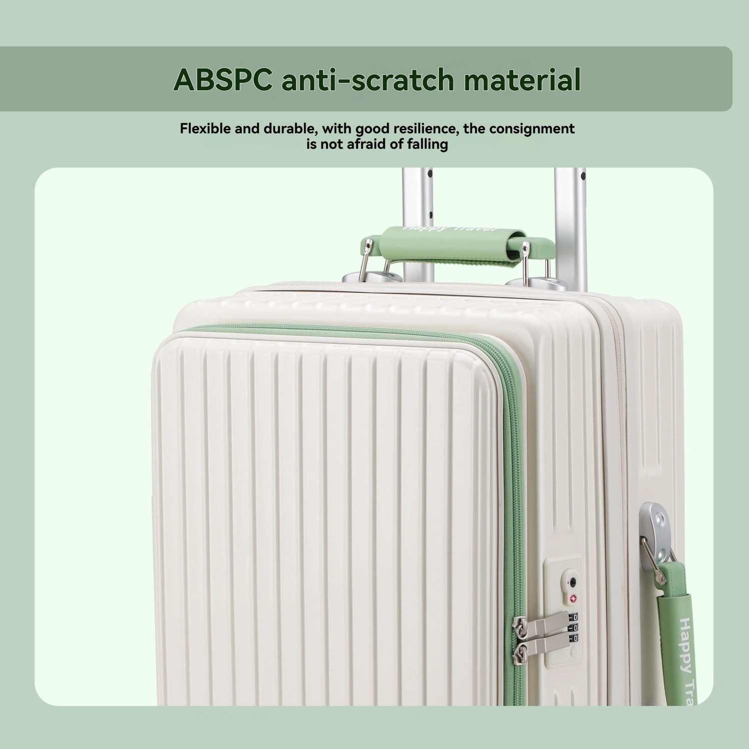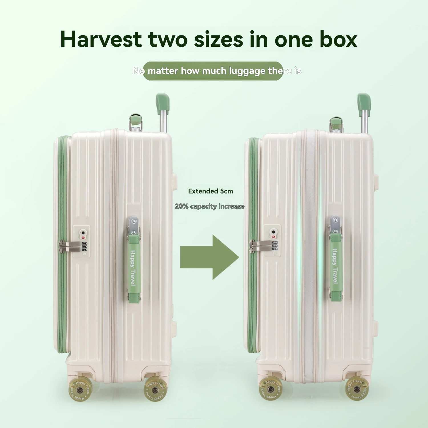 1-Piece Set of Front-Opening Suitcase with Jelly Wheels, Trolley Case with 5cm Expansion Layer, Leather Handle, Luggage with Phone Holder, Foldable Cup Holder, Side Hook Function, Customs Lock, Suitable for Outdoor Beach Vacations and Long-Distance Travel
