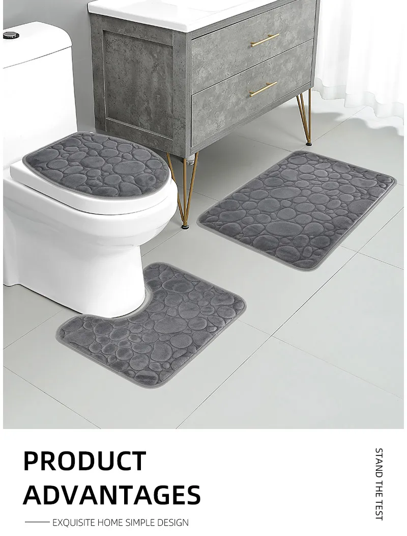 • Three-Piece Set :This set includes three pieces of mat, providing ample coverage for your bathroom floor and contributing to a cohesive and stylish look.
