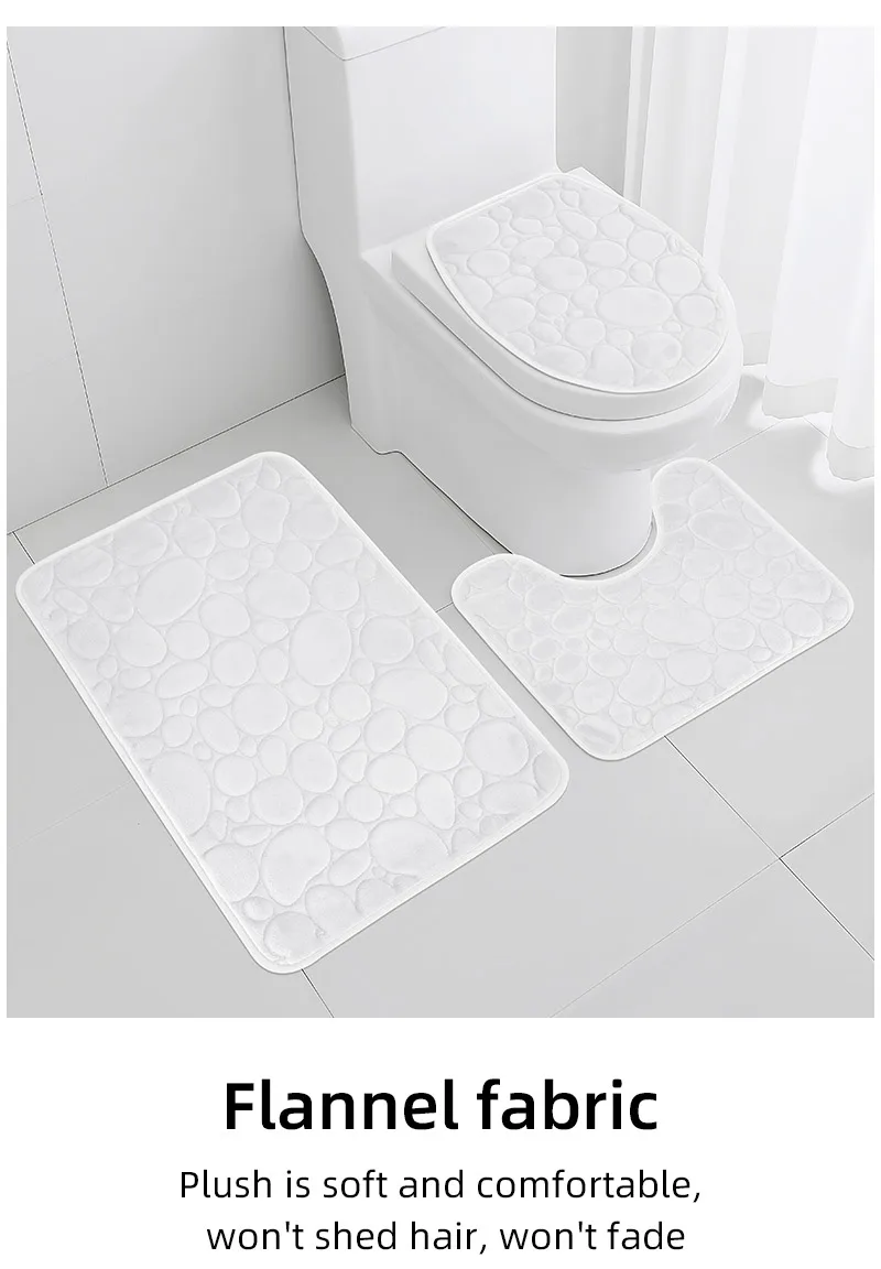 1 Set of Solid Color Simple Bathroom Water-absorbing and Non-slip Floor Mat Stone Pattern, Comfortable and Soft, Three-piece Set
