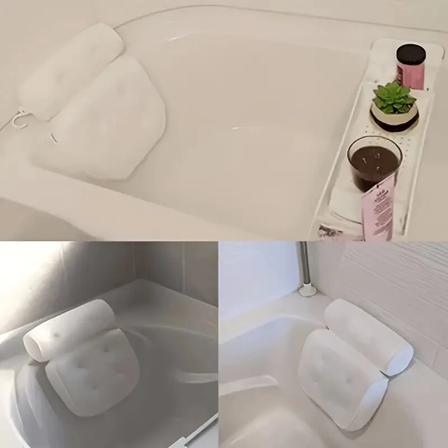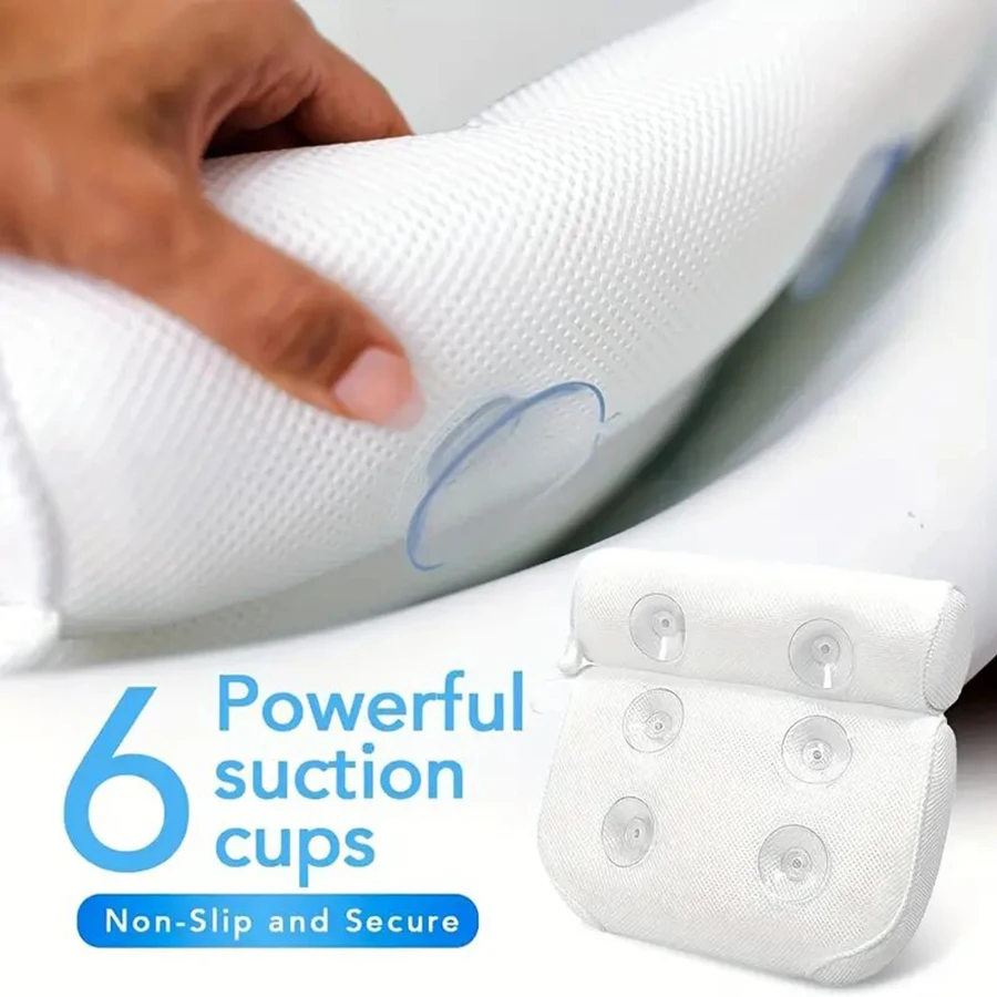 1 spa bathtub pillow with anti slip suction cups for neck and back support, bathtub/bathroom accessory