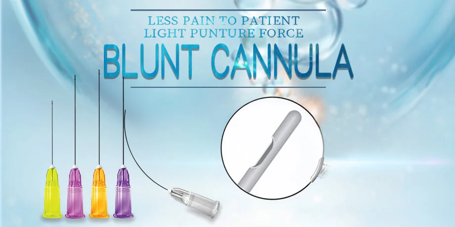 blunt-tip slides under the skin and does not cut through vessels and tissues but rather navigates smoothly through the dermis and Sub-Q layer.