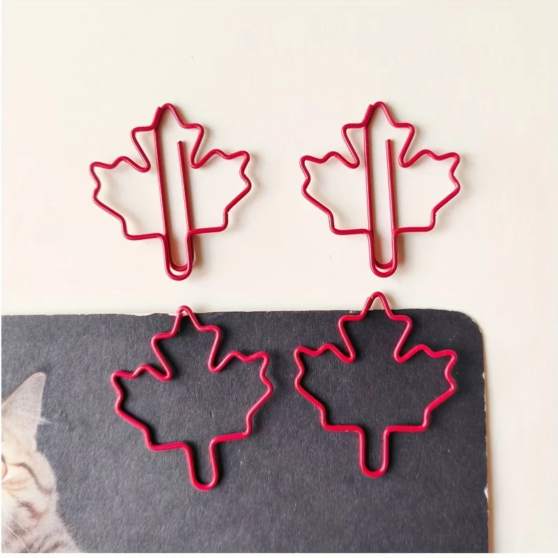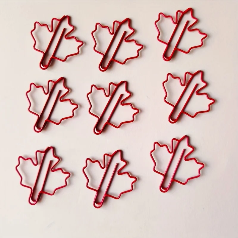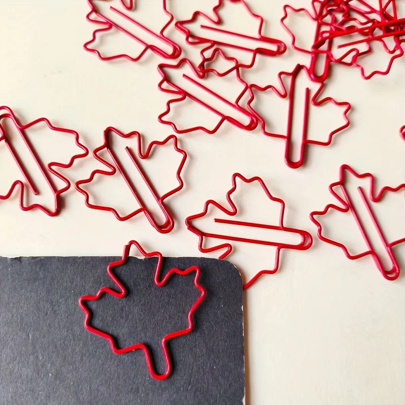 10/20/30pcs Red Maple Leaf Paper Clips - Durable Metal Autumn-Inspired Design for Office, School, Home Organization