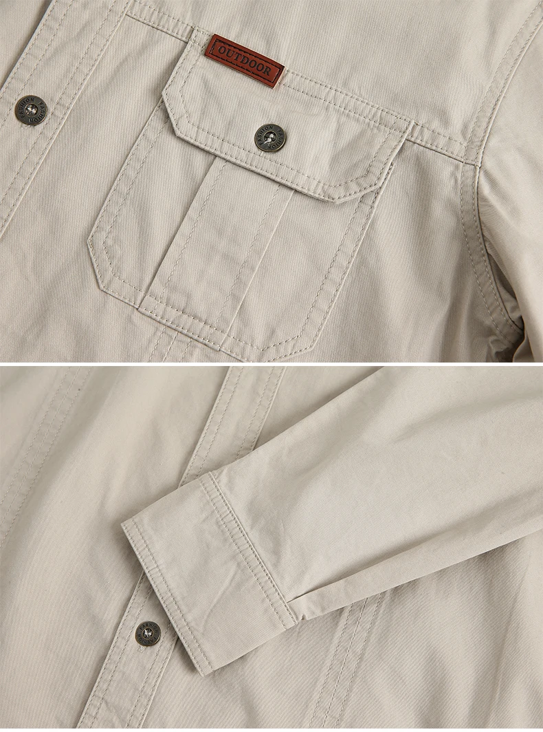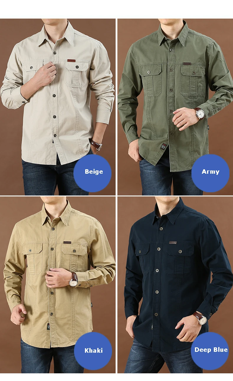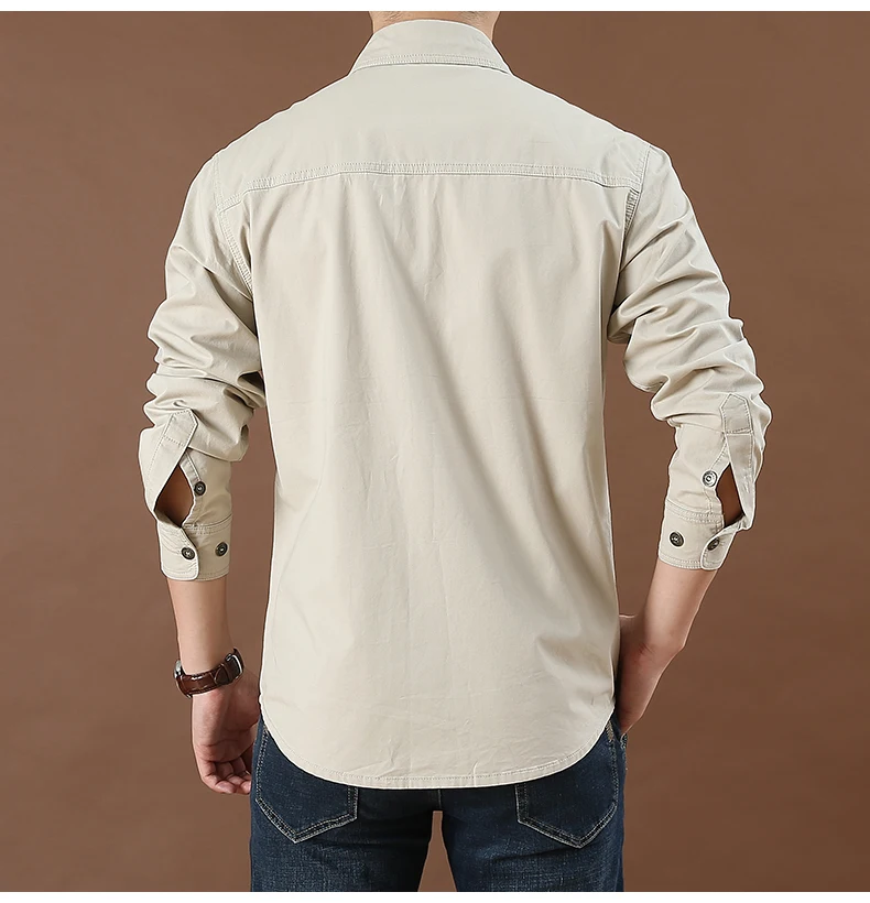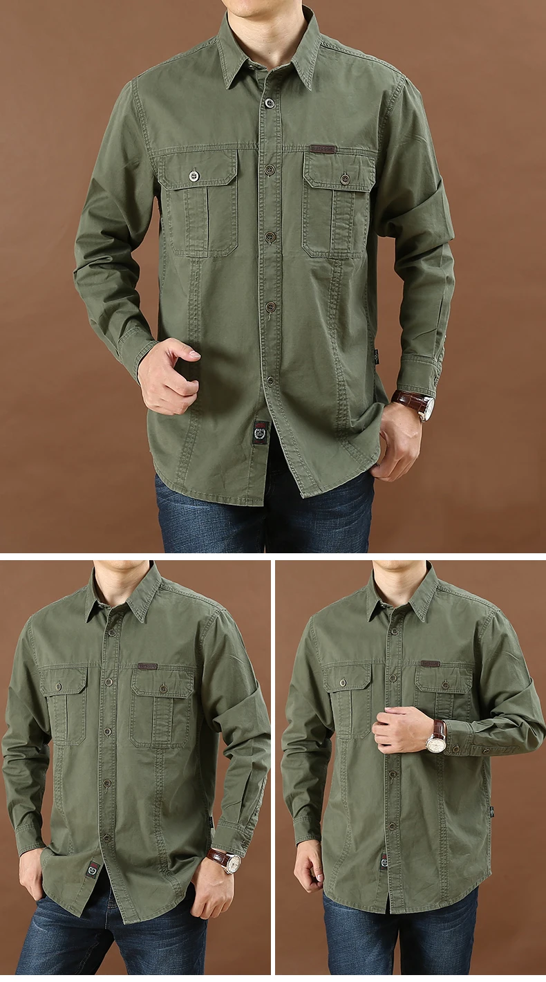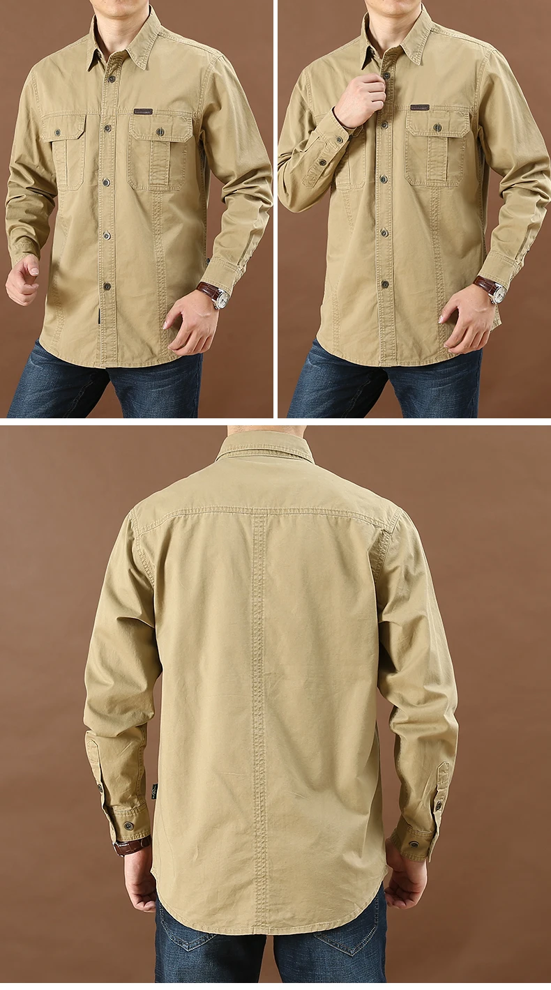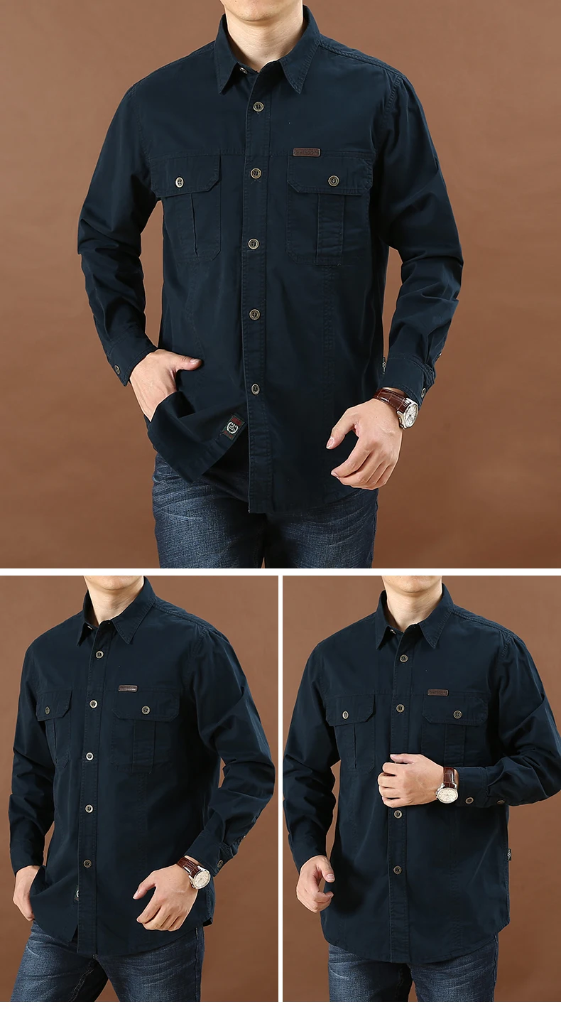 100% Cotton High Quality Spring Fall Fashion Men's Long-Sleeve Solid Color Casual Shirt Multi Pocket 6XL Large Size Cargo Jacket