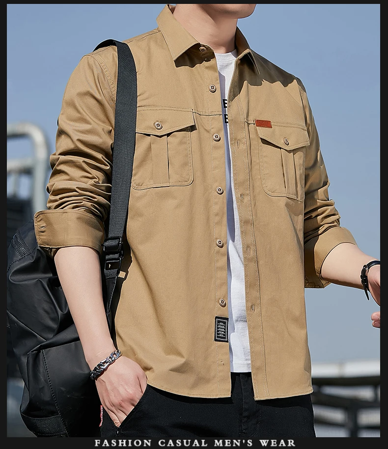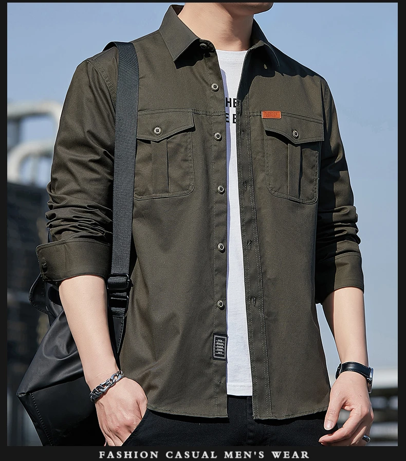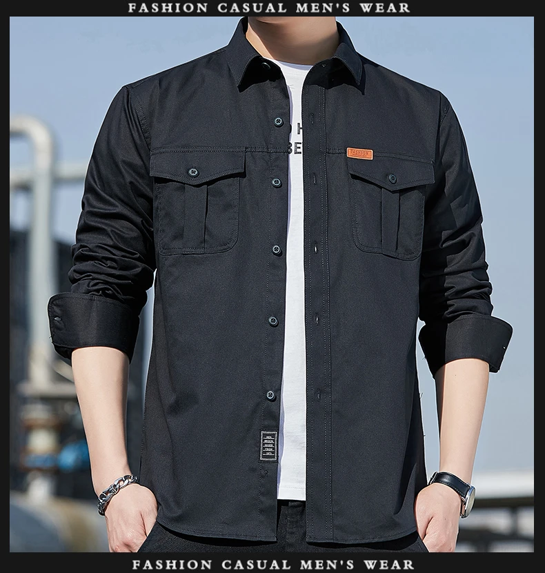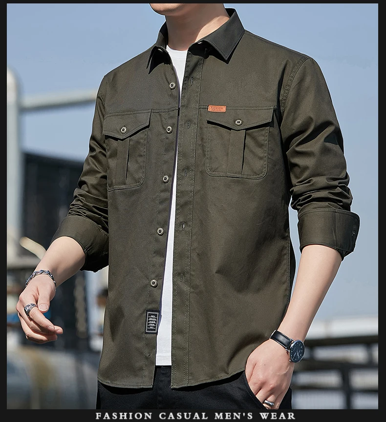 100% Cotton New Cargo Shirt for Men Long Sleeve 2 Pocket Shirts Outdoor Casual Blouses High Quality Clothing Overshirt