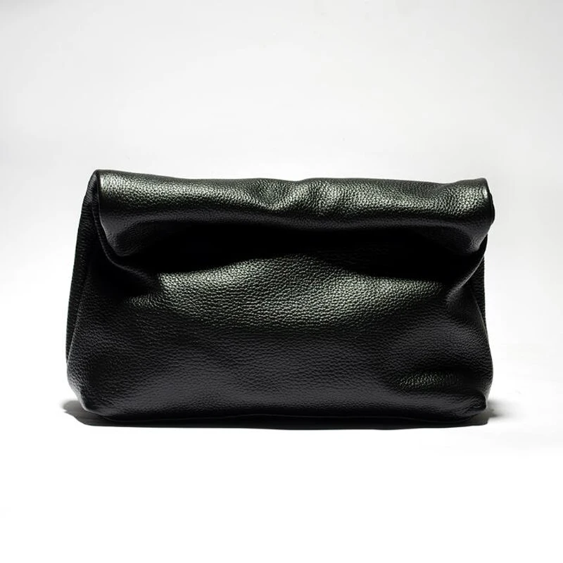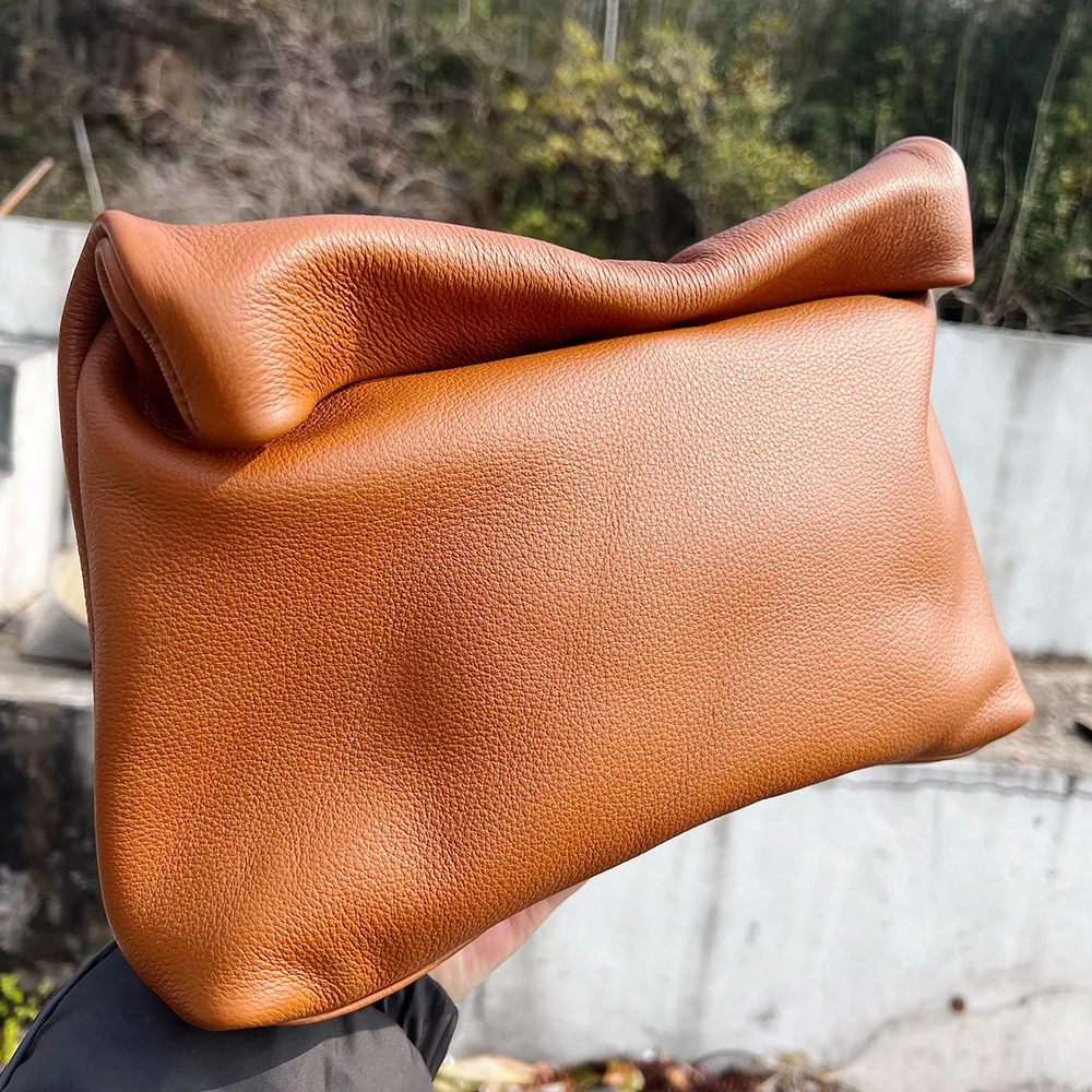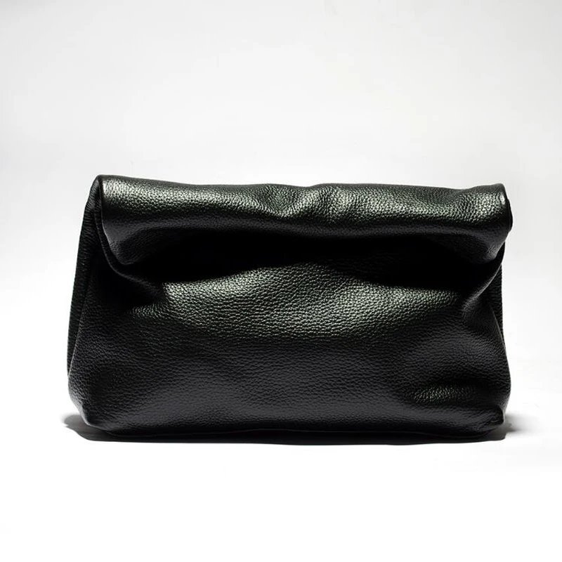 100% genuine leather Cowhide Handbag High Quality Leather Women's Foldable Designer Handbag Simple Magnet Handle Bags