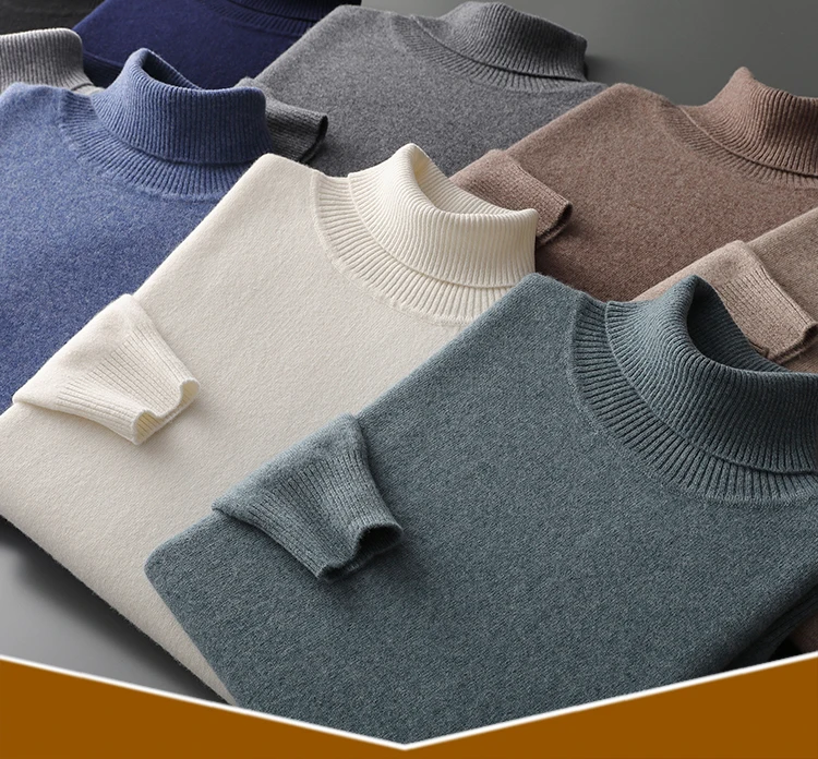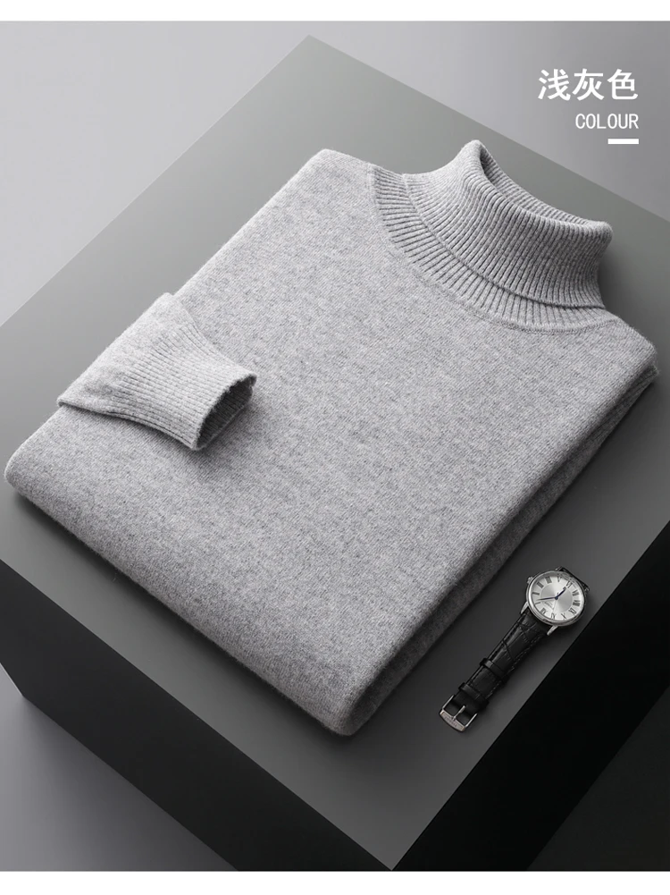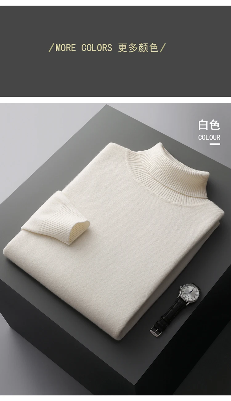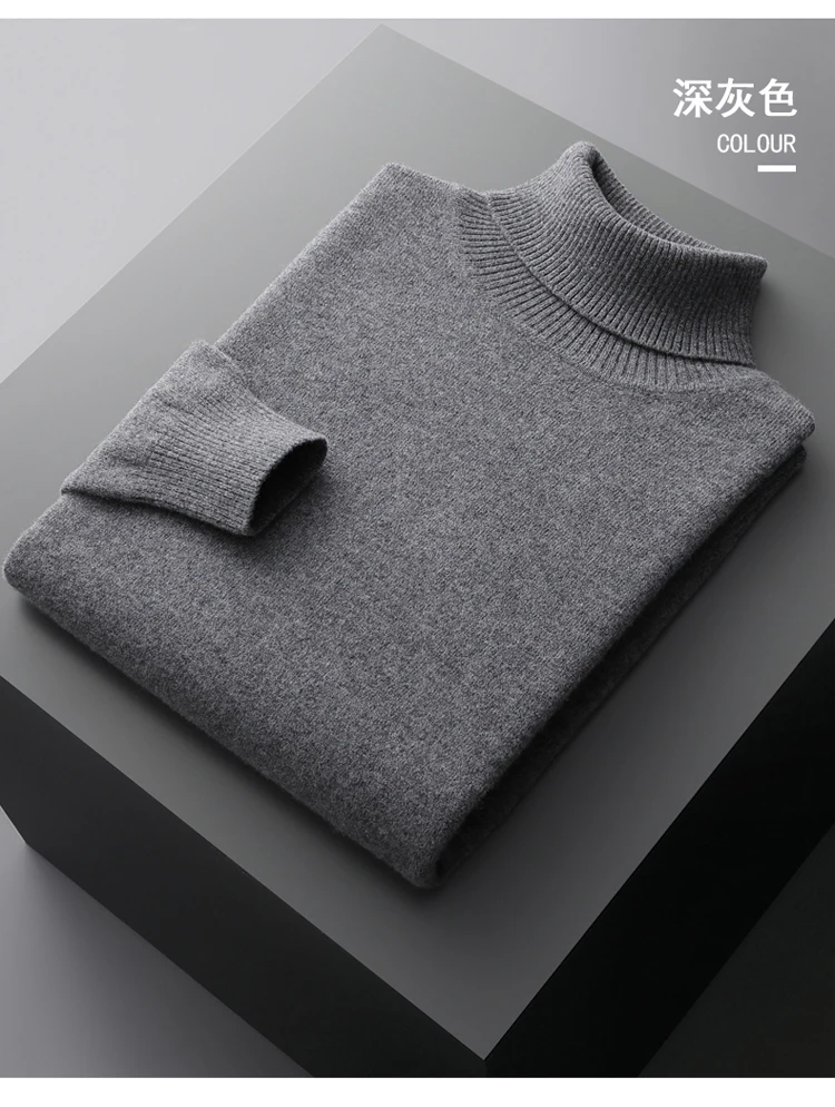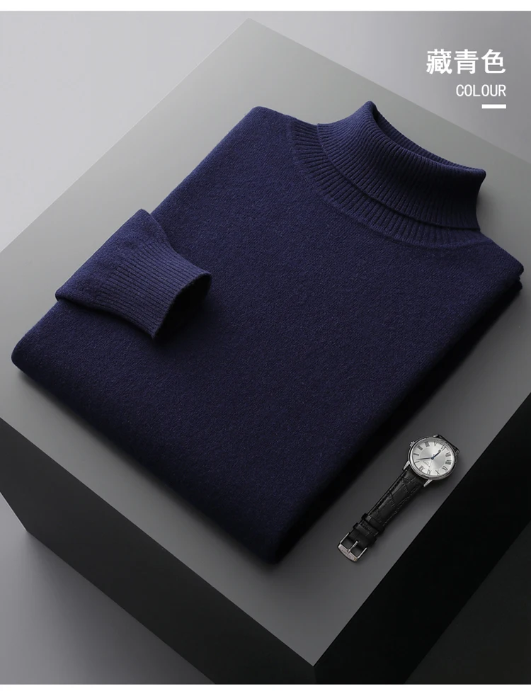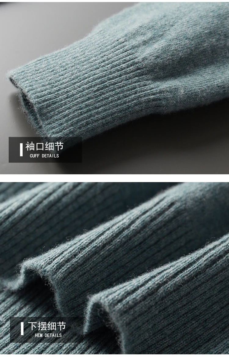 100%Merino Wool Lapel Sweater Men's Turtleneck Loose Knit Pullovers Youth Business Casual Joker Tops Warm Solid Color Base Shirt