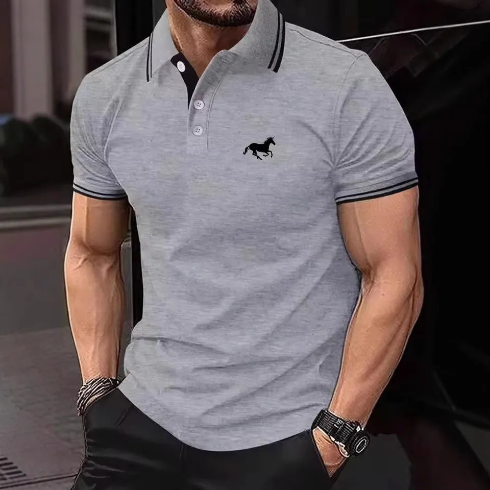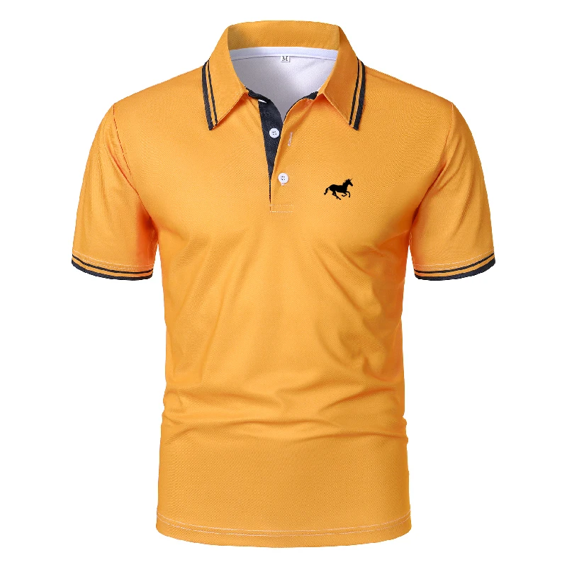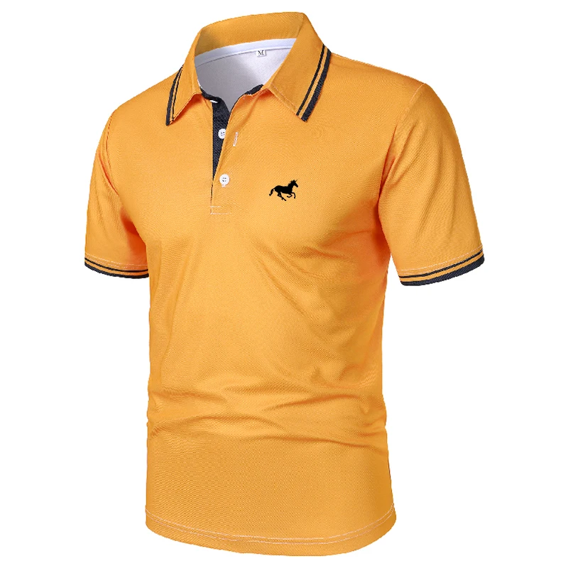 100% Polyester New Men Clothes Summer Short Sleeve Fashion Business Casual Lapel Polo Shirt Logo Print Men Sport Golf Polo Shirt