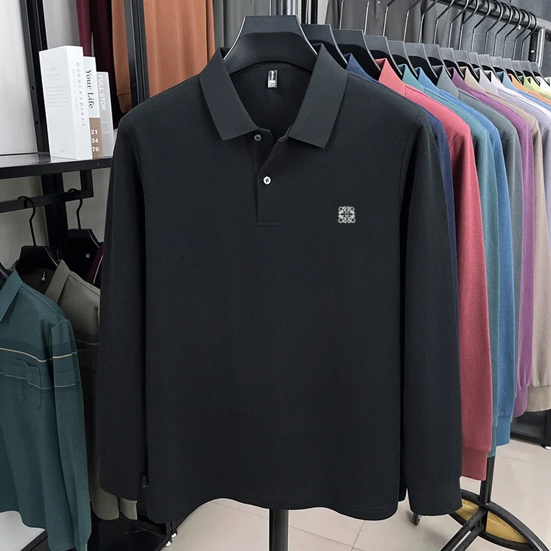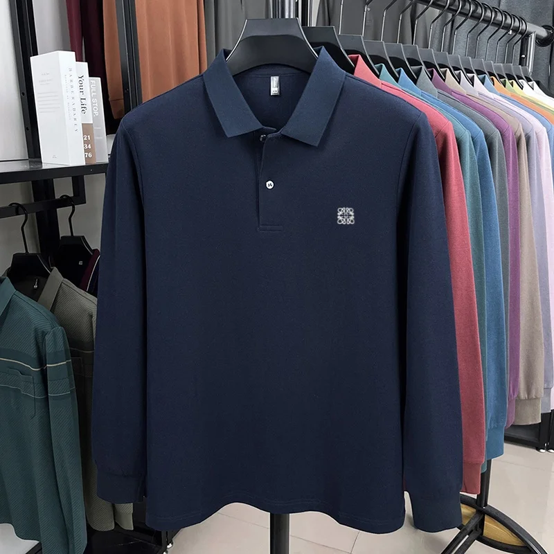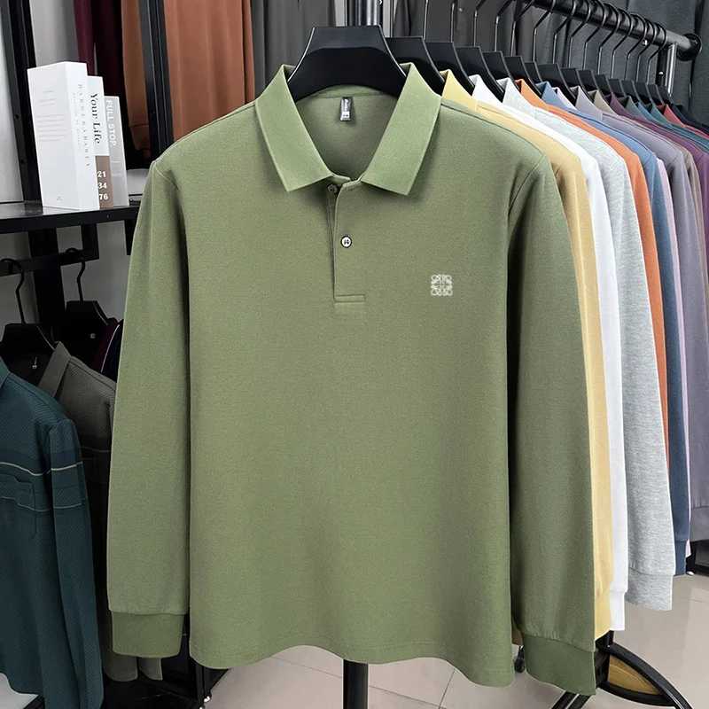 100% pure cotton spring and autumn fashionable men's collar striped long sleeved polo shirt brand embossed casual T-shirt