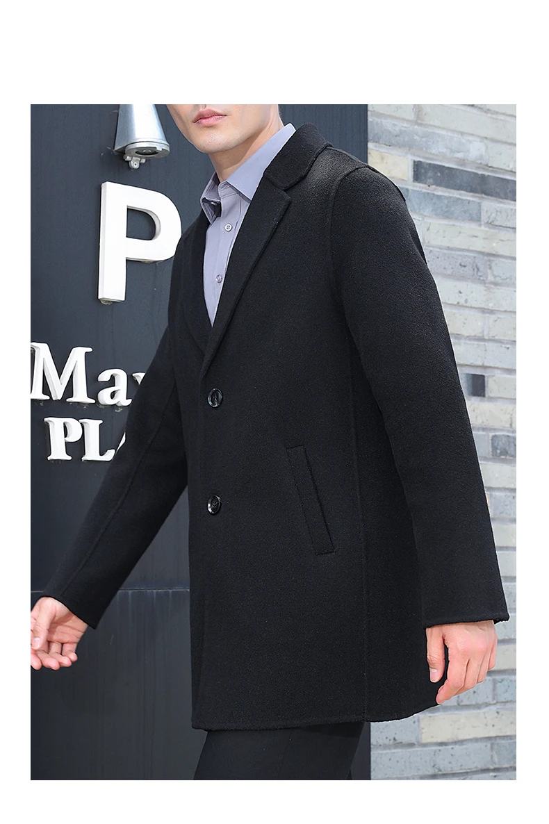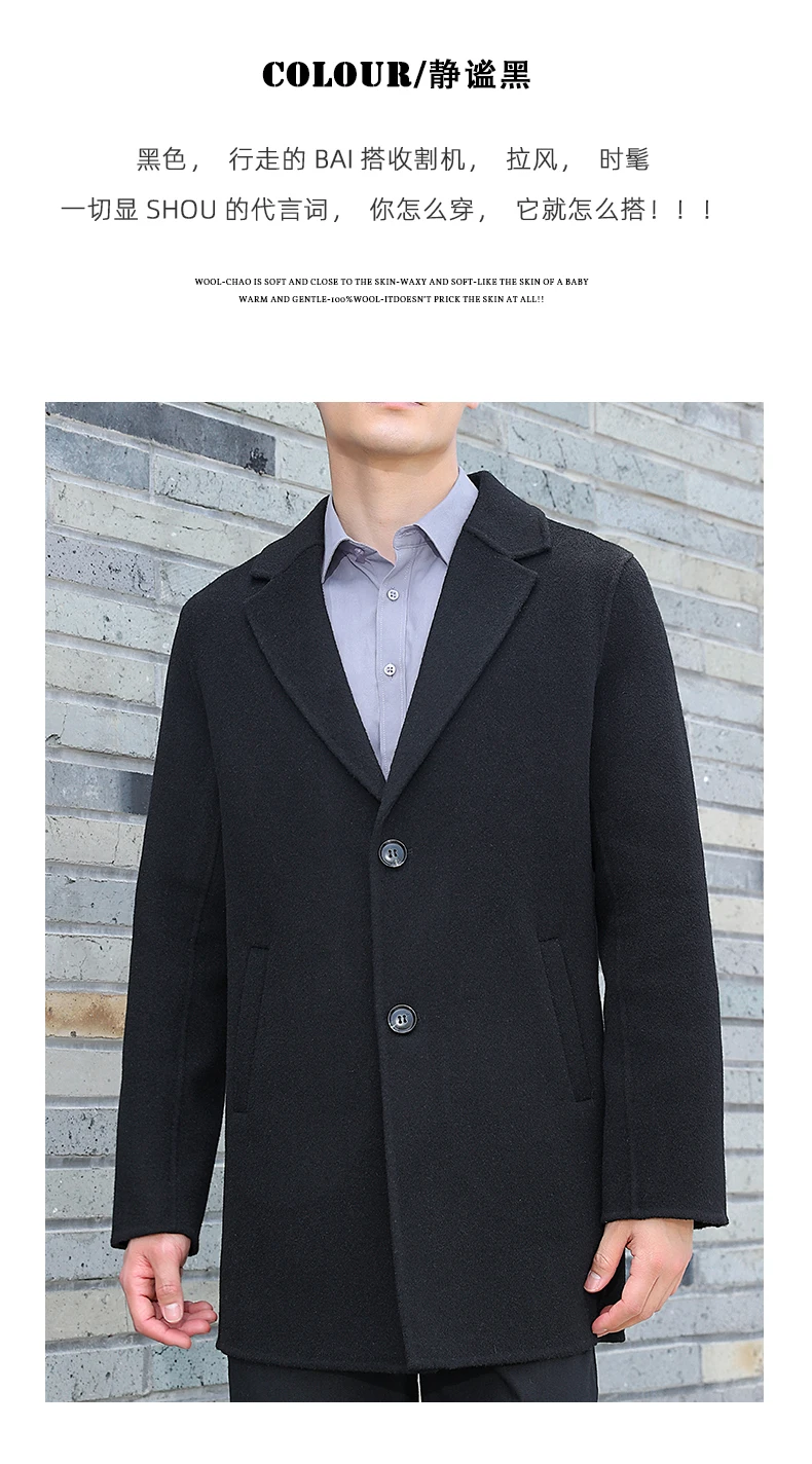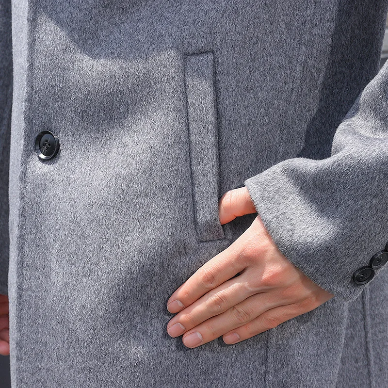 100% Wool Hand-Sewn Men's Coat Long Overcoats Boy Buttons Cardigan Long-style Woolen Coats Overcoat 2024 New