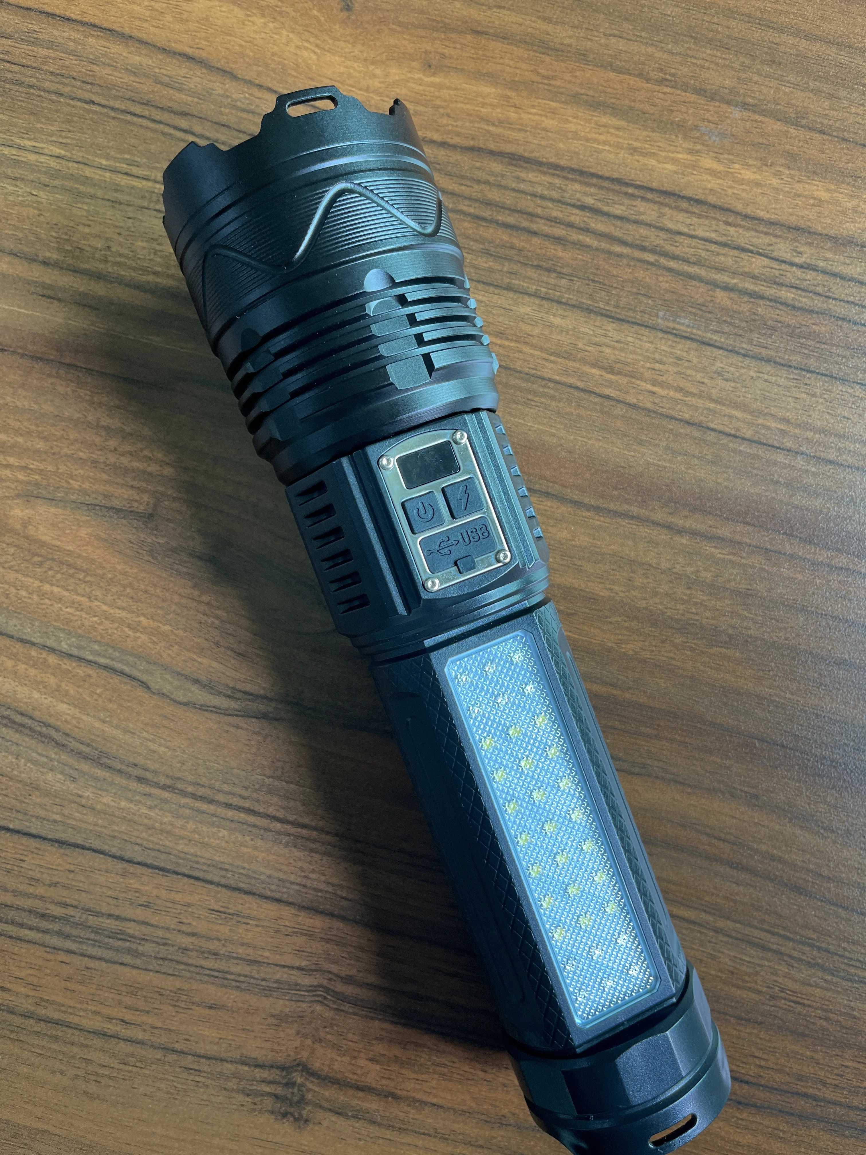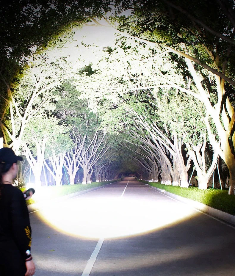 1.【15000mAh Super Bright Flashlight】This unique large-capacity LED rechargeable flashlight can illuminate 500², and the ultra-wide beam can easily illuminate the entire room and backyard or even the football field, with a maximum lighting distance of 3000 meters. The large-capacity built-in battery can illuminate continuously for 10-20 hours, and the COB lamp can illuminate for 48 hours. Can be widely used in emergencies, camping, night hiking, fishing and hunting.