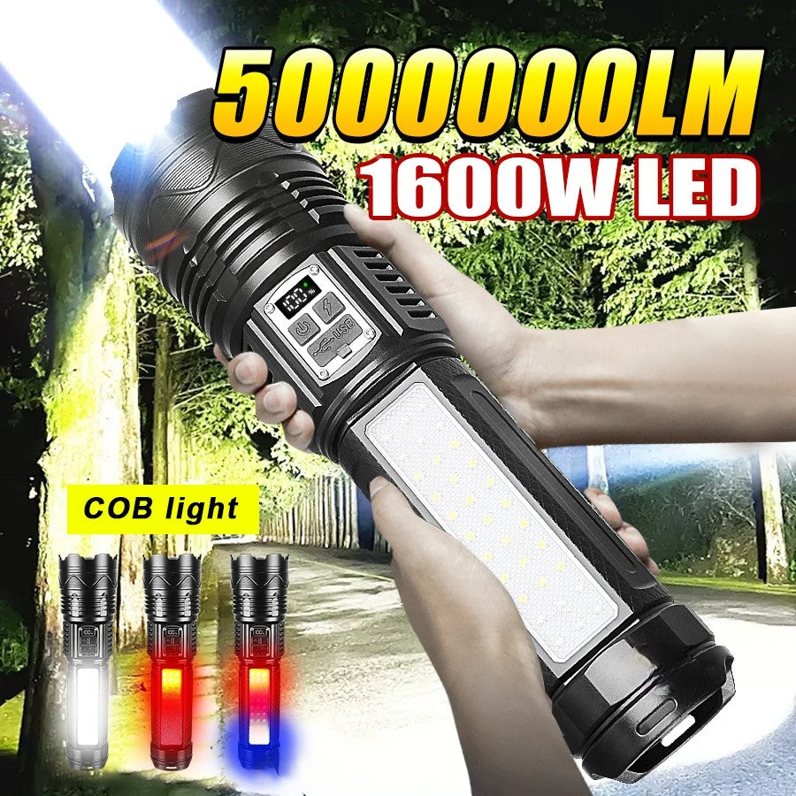 1000000LM Most Powerful LED Flashlight Rechargeable Type-c Flashlight Long Range 6000M Tactical Torch Light For Fishing Hunting