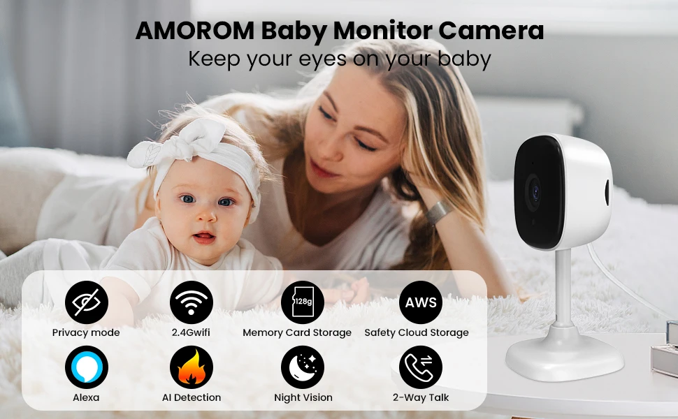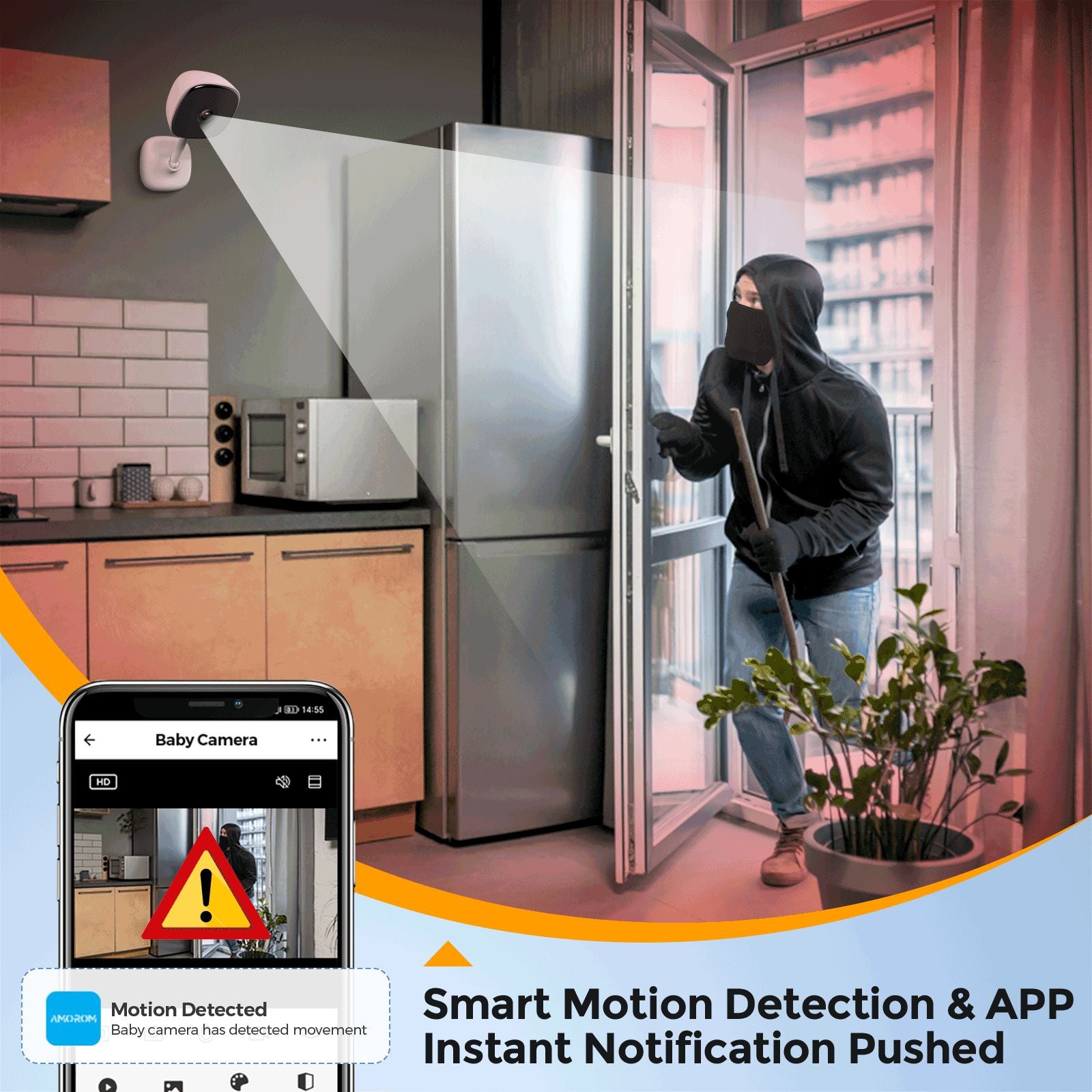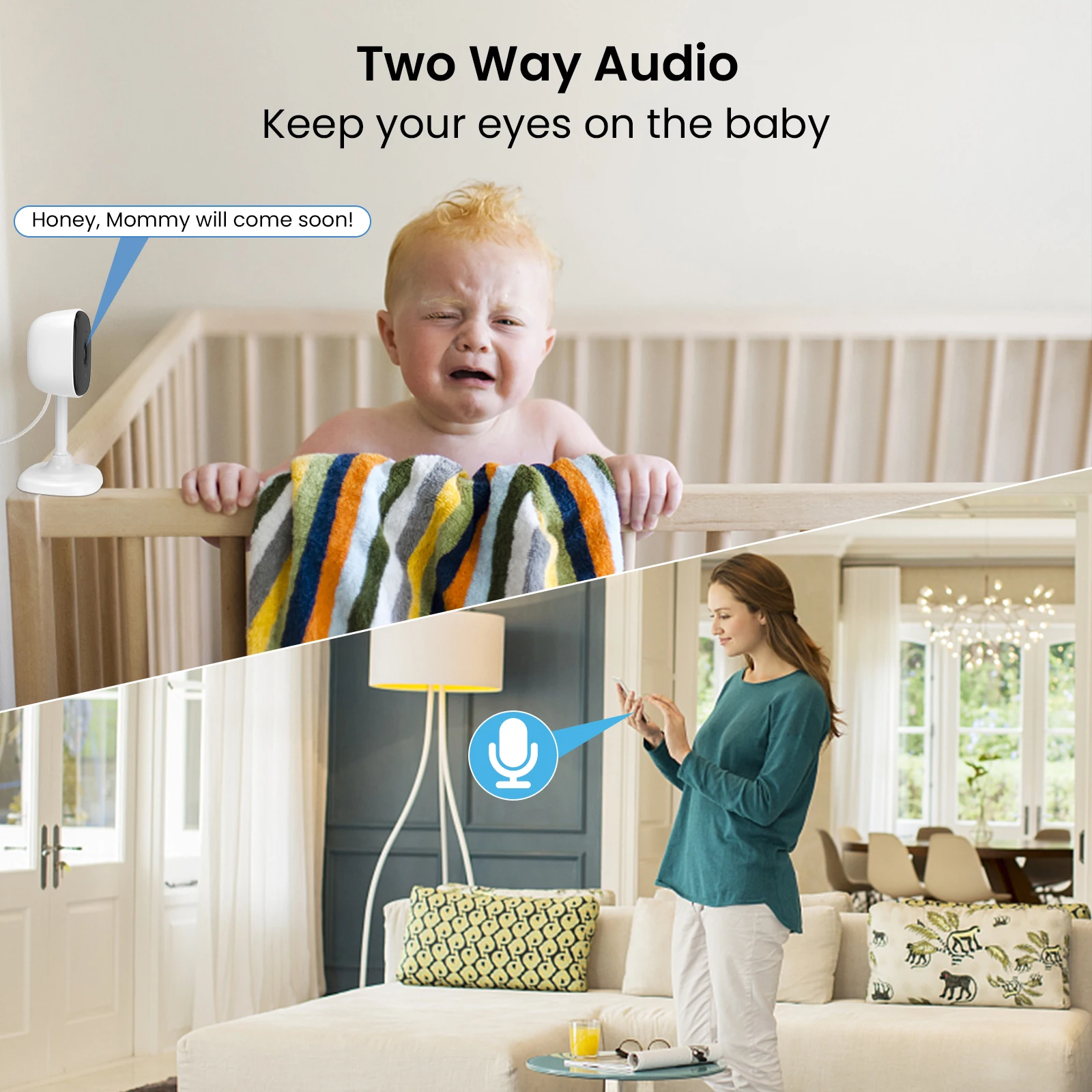 • Secure AWS & Complimentary Local Storage Assistance?Our indoor camera features state-of-the-art bank-grade encryption technology, ensuring your data is safeguarded on our secure US cloud server. Rest assured that even in the unlikely event of theft, your privacy will remain intact. Additionally, this camaras de seguridad para casa offers free local storage support via a Micro SD Card (up to 128G, not included), allowing you to store footage conveniently and securely.
