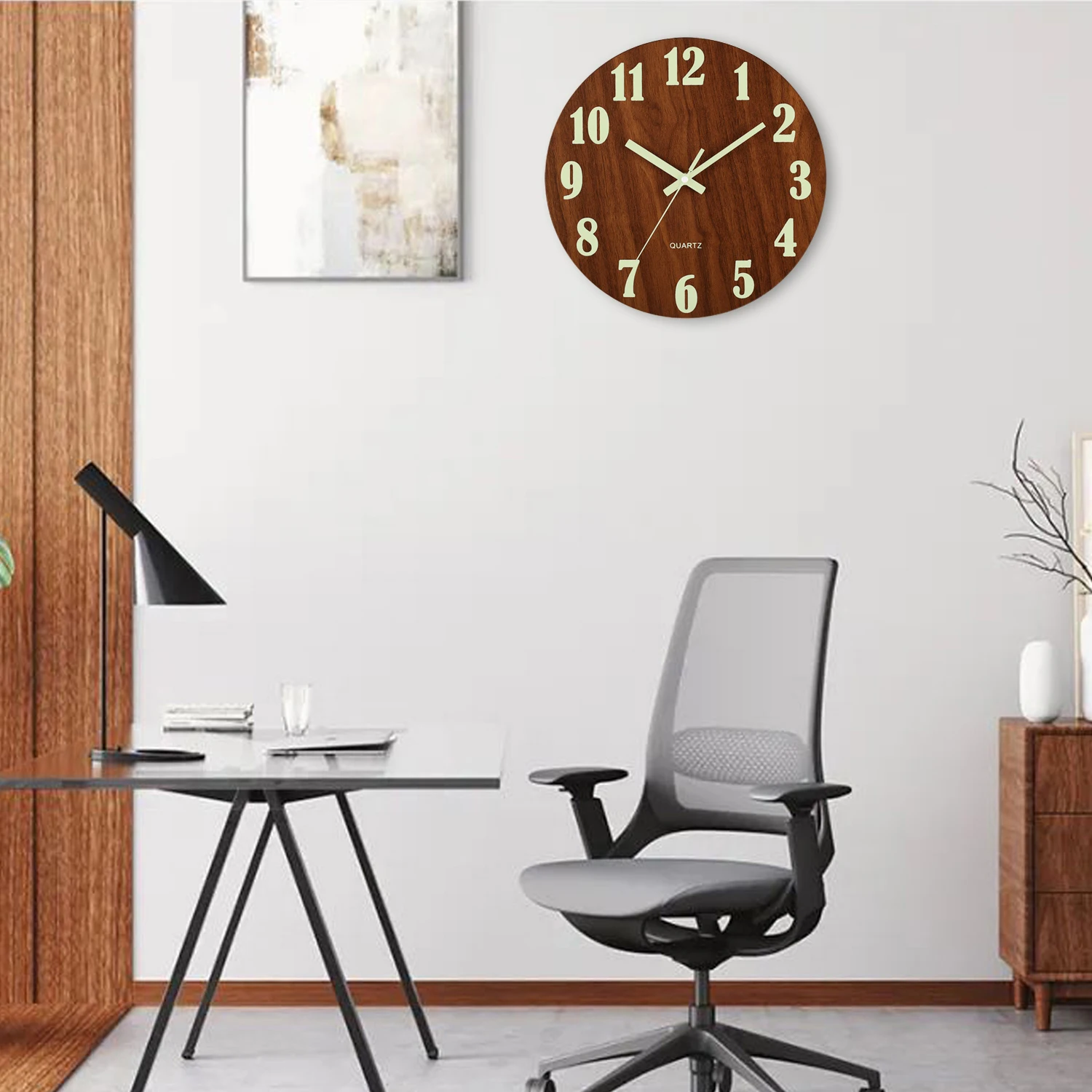 Minimalist wall clock: Simple and Modern Design will look beautiful in any room. It will match all of your décor in your home and office. Wooden face with luminous Arabic number and week looks sh ar p even accross your room.