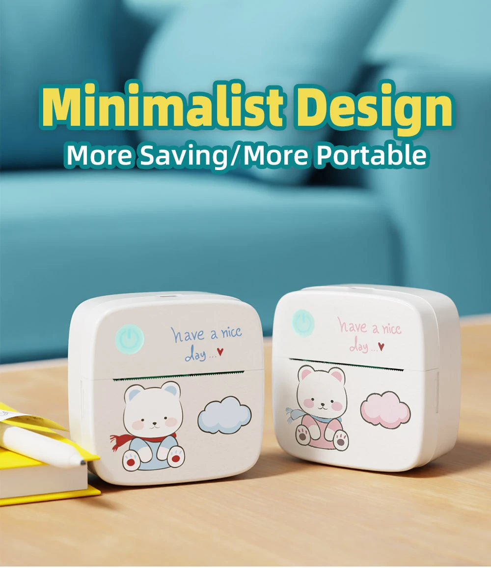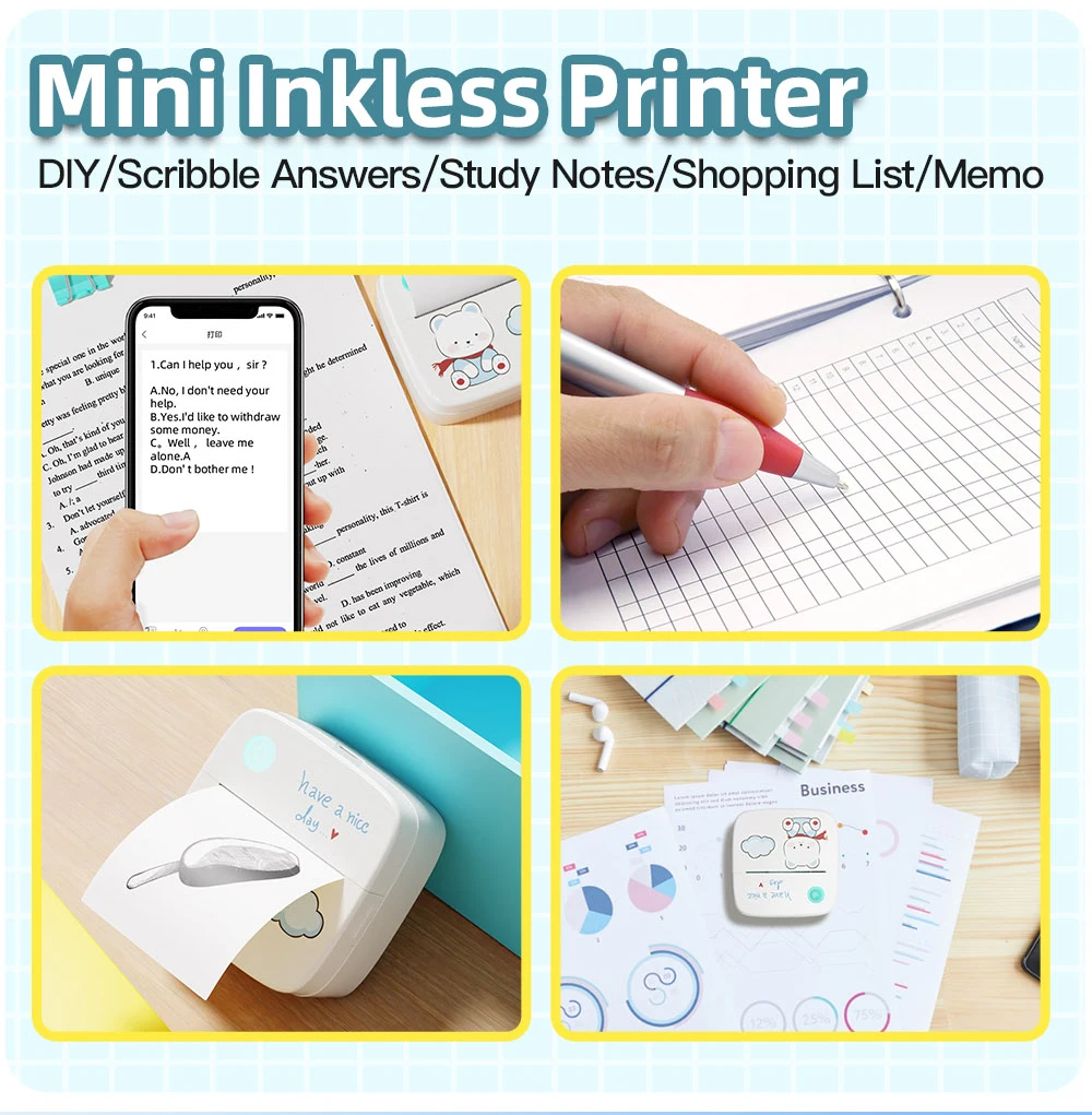 New inkless pocket printer for printing pictures/photos, memos, shopping lists, study/meeting notes, etc.A variety of printing paper can be replaced, thermal paper/label paper/label stickers can be used, and paper with a maximum width of 57mm can be used.