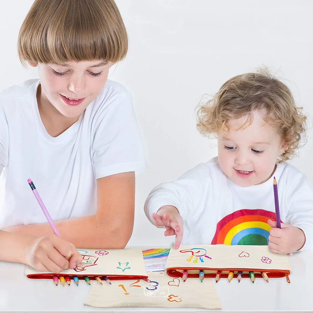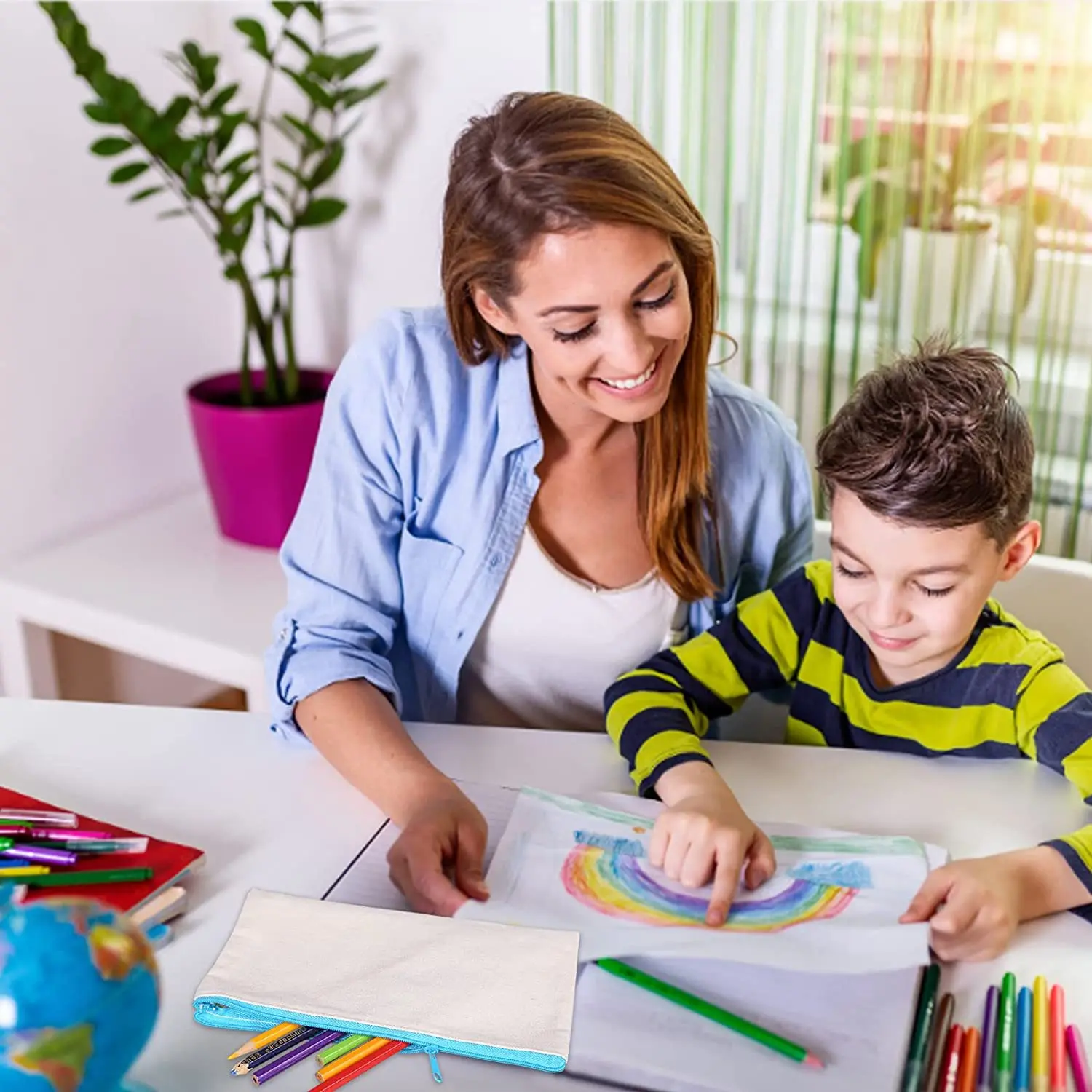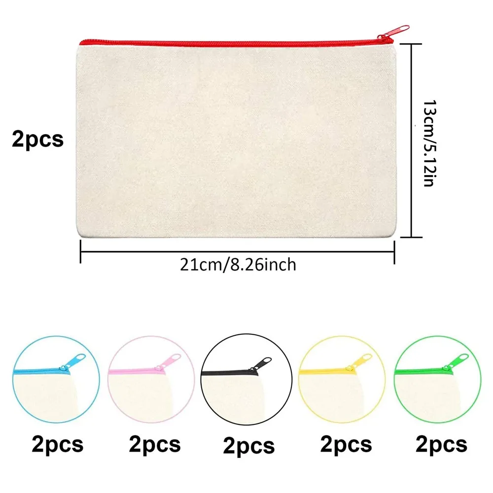 12Pcs Canvas Zipper Pouch Blank DIY Craft Pencil Case, Multipurpose Makeup Bags for Pen, Cosmetic, Invoice Bill
