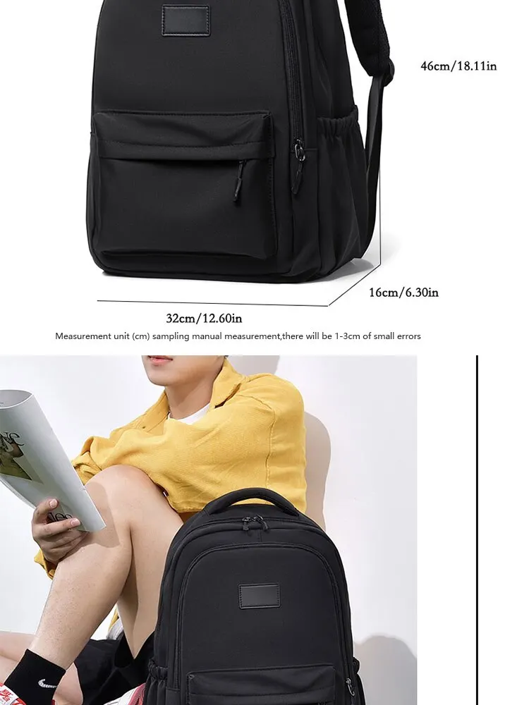 14 Inch Men And Women Universal School Bag Leisure Solid Color Outdoor Sports Shoulder Bag Large Capacity Travel Laptop Backpack