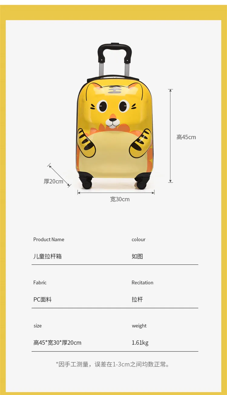 18 Inch ABS Spinner Cartoon Children's Trolley Case Wheel Suitcase Cute Animal 3D Three-dimensional Student Travel Luggage