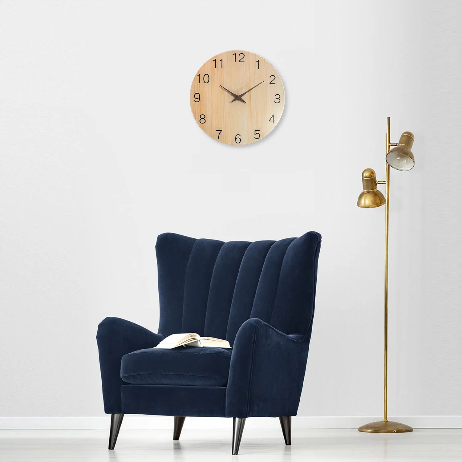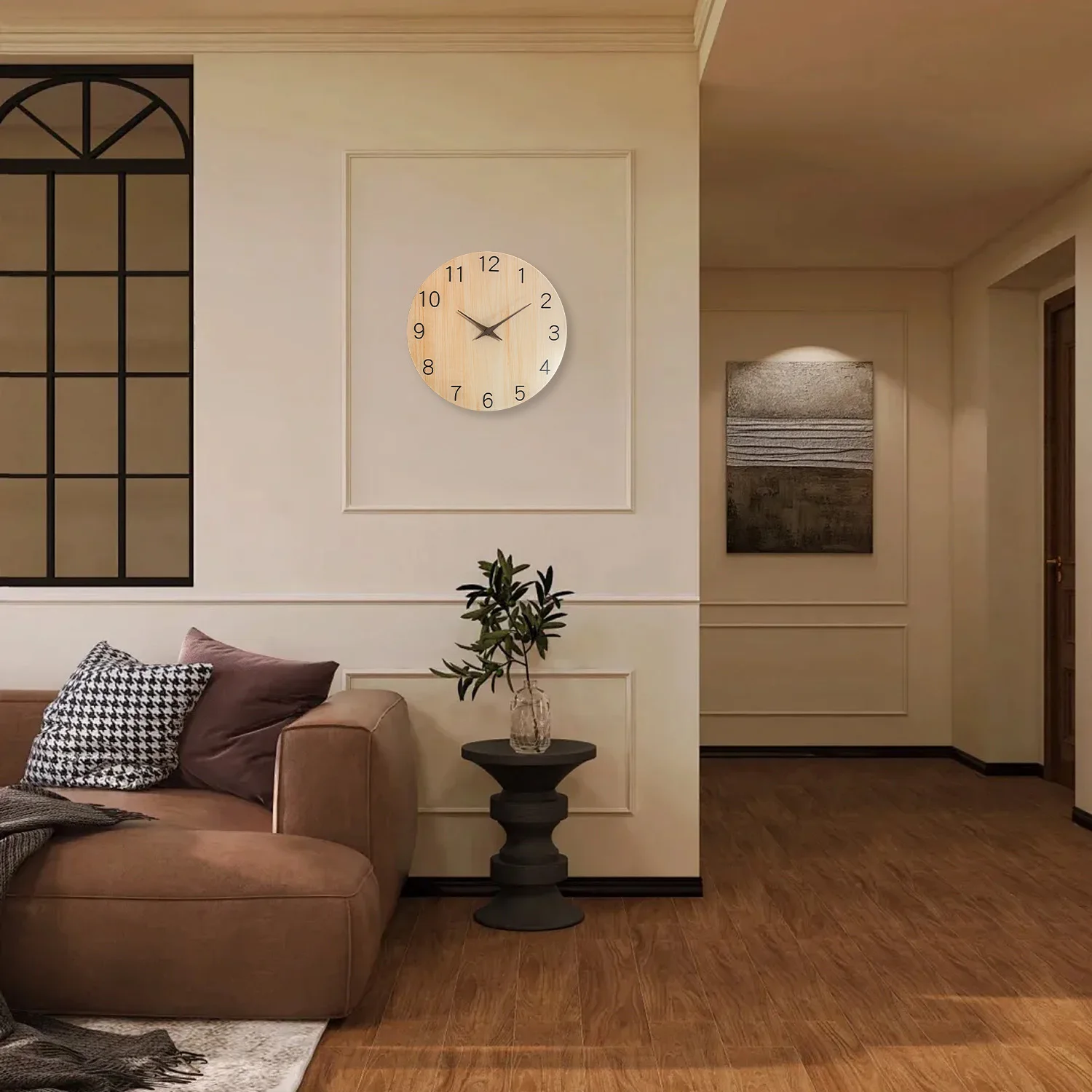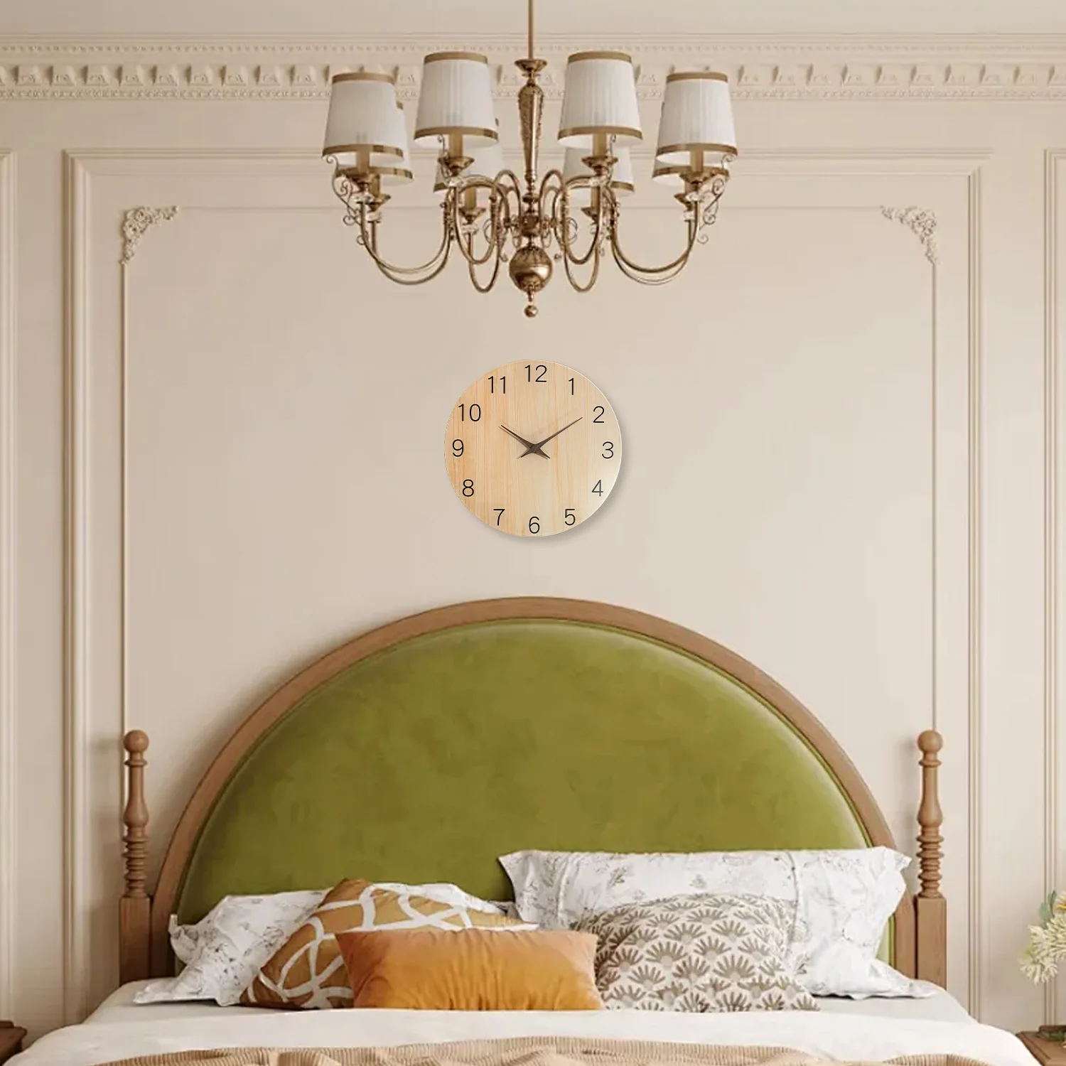 1pc 12-16inch tempered glass wall clock, light wood grain pattern with solid wood hands design wall clock, home mute wall clock