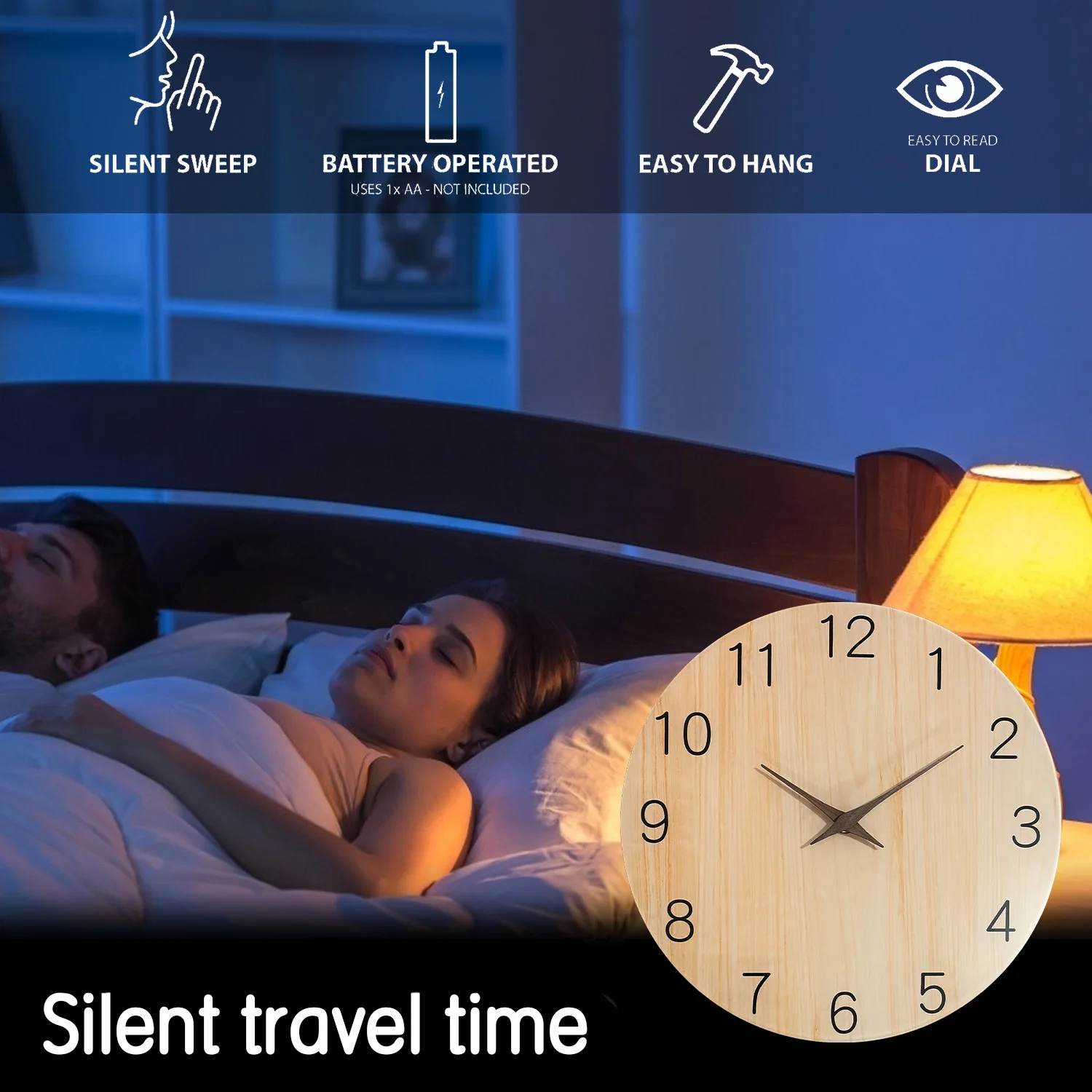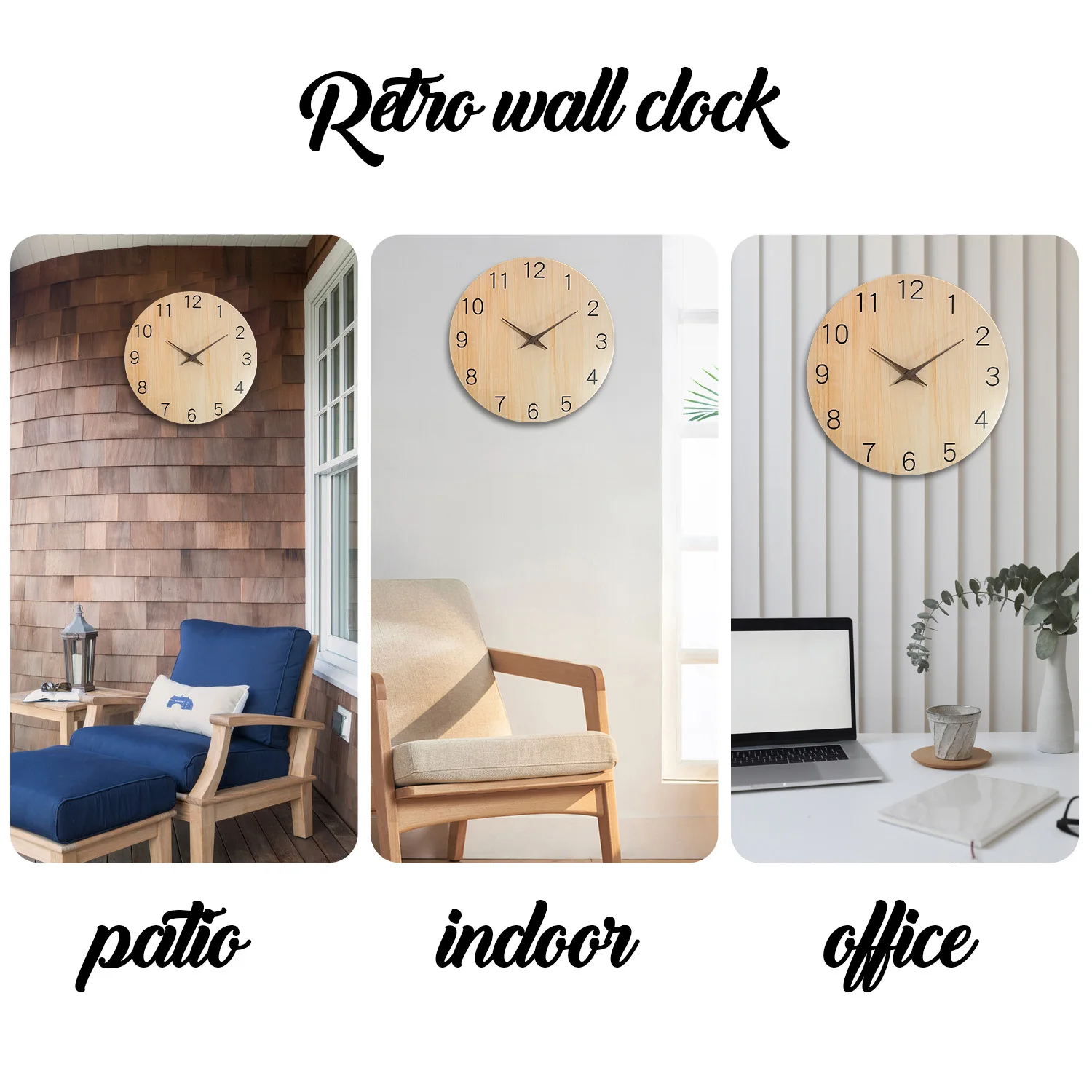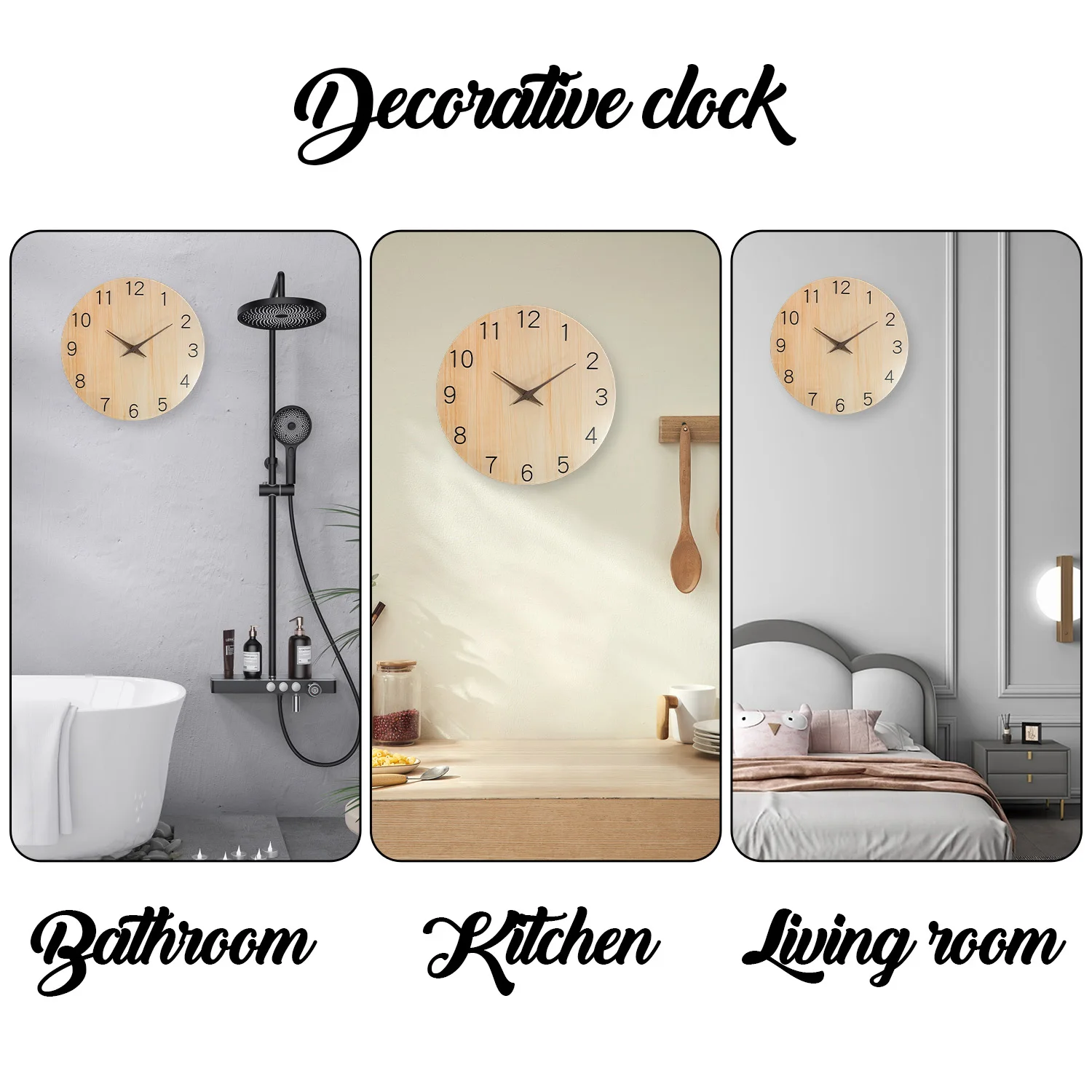 1pc 12-16inch tempered glass wall clock, light wood grain pattern with solid wood hands design wall clock, home mute wall clock