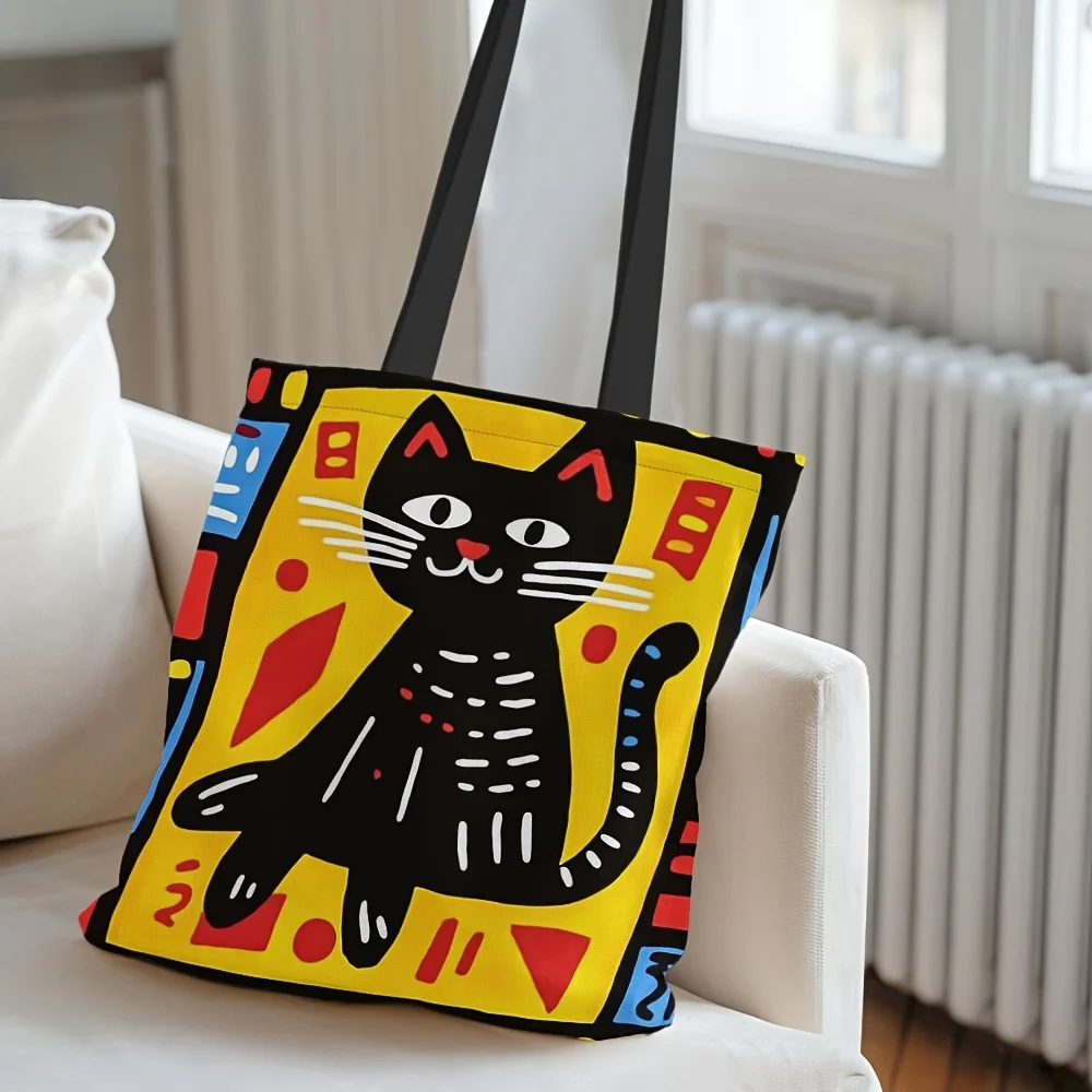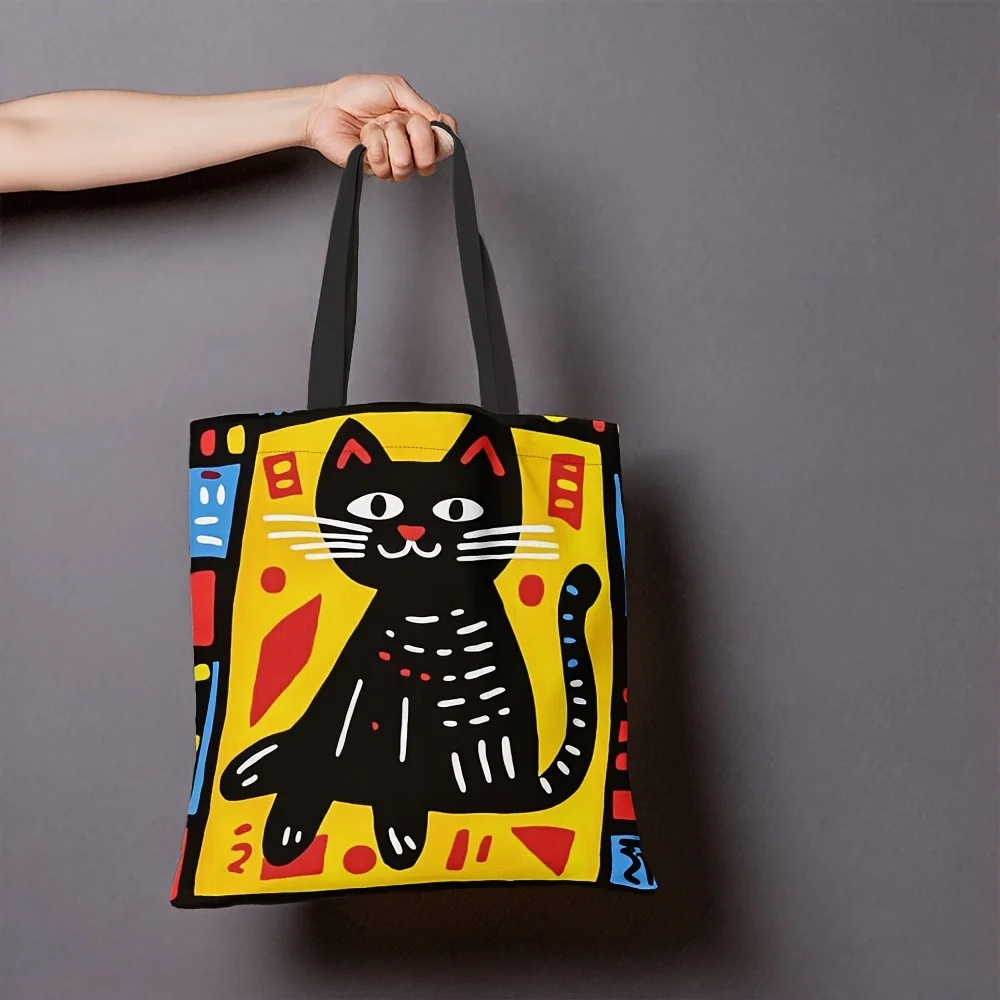 1pc Graffiti Cat Polyester Tote Bag, Durable Rectangle Shopping Bag, Ideal for Easter, Ramadan