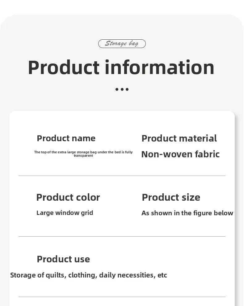 1. Material: The storage bag is made of non-woven fabric, foldable, strong and wear-resistant.