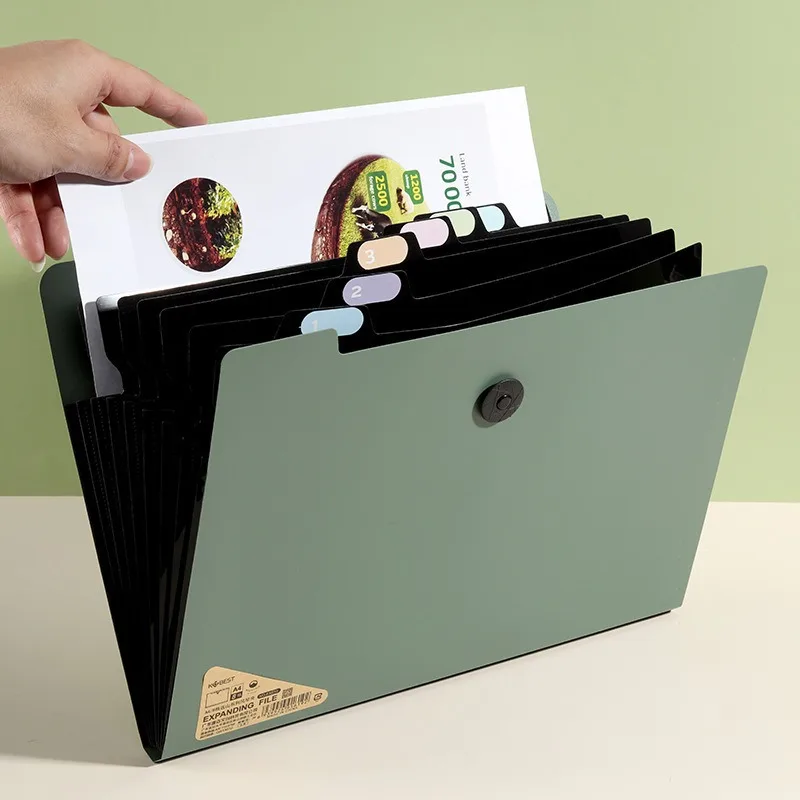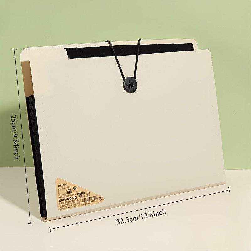 1PC Premium Black 5-Compartment Folder with Handle, Durable PP Desk Organizer with Color-Coded Labels for Office & Home Use