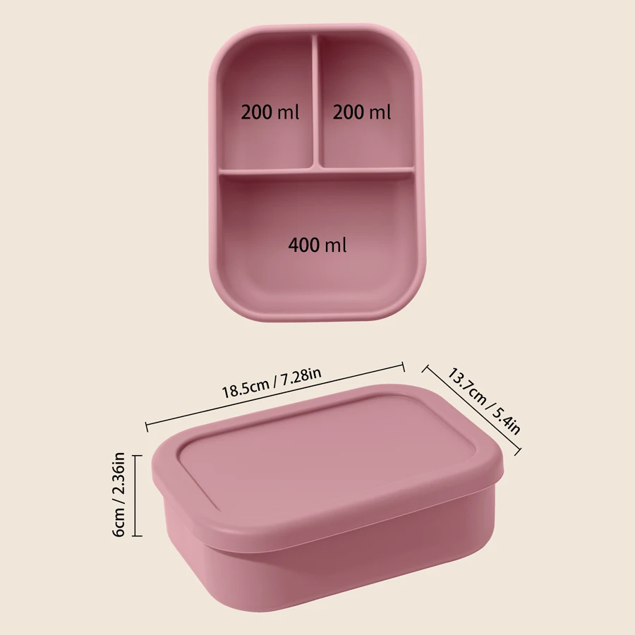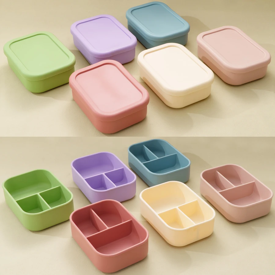 1PCS Baby Silicone Food Storage Box Solid Color Baby Tableware Three-compartment Dinner Plate Children Portable Lunch Box