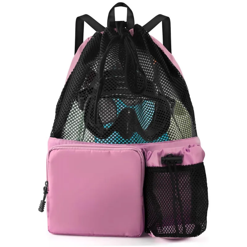 1pcs Mesh Drawstring Backpack Large Capacity Gym Beach Travel Bag Polyester Outdoor Sports Backpack