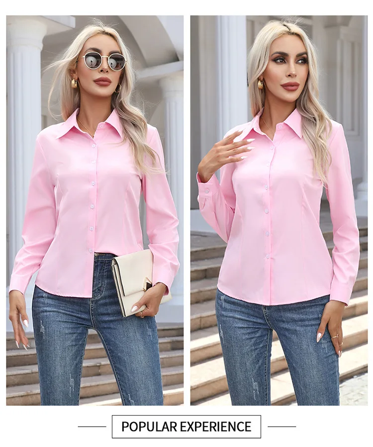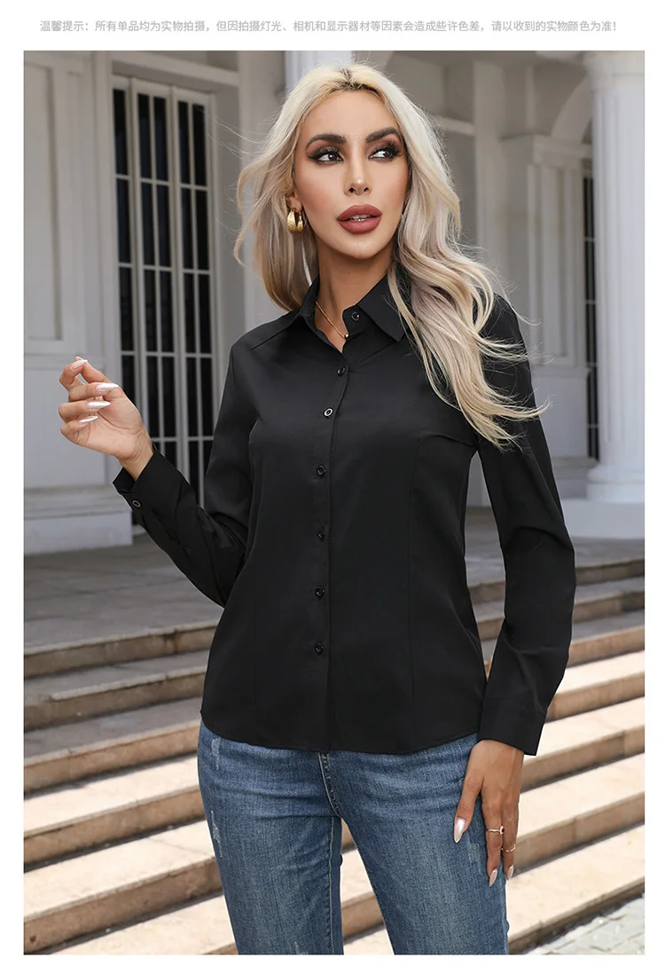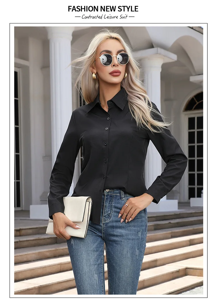 1pcs Woman Spring Autumn Solid color Shirts Lady Casual Long Sleeve Turn-down Collar Loose Shirt Female Fashion Temperament Tops
