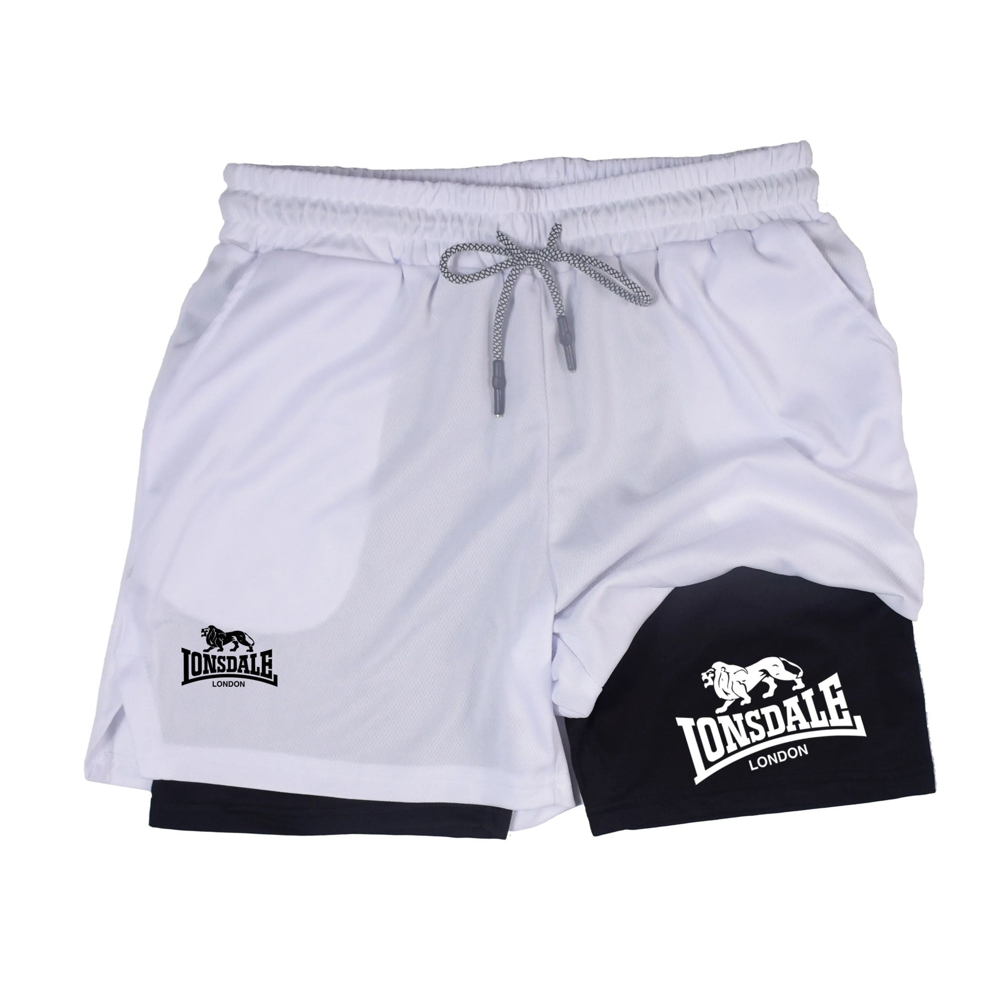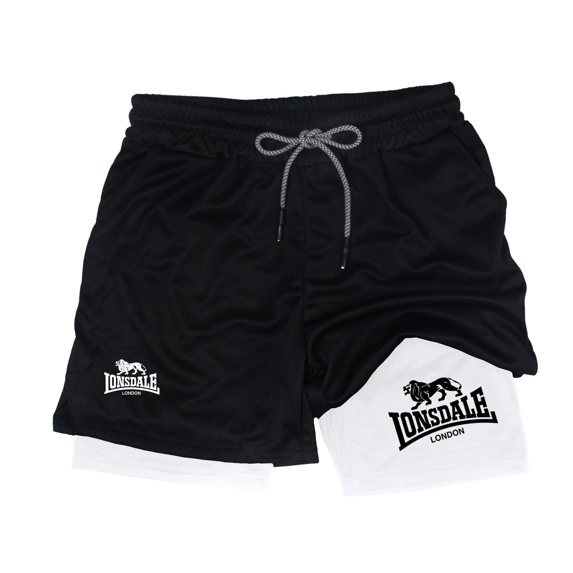 2 in 1 Running Shorts Men Workout Lonsdale Compression Shorts with Phone Pocket Towel Loop Summer Sport Athletic Activewear