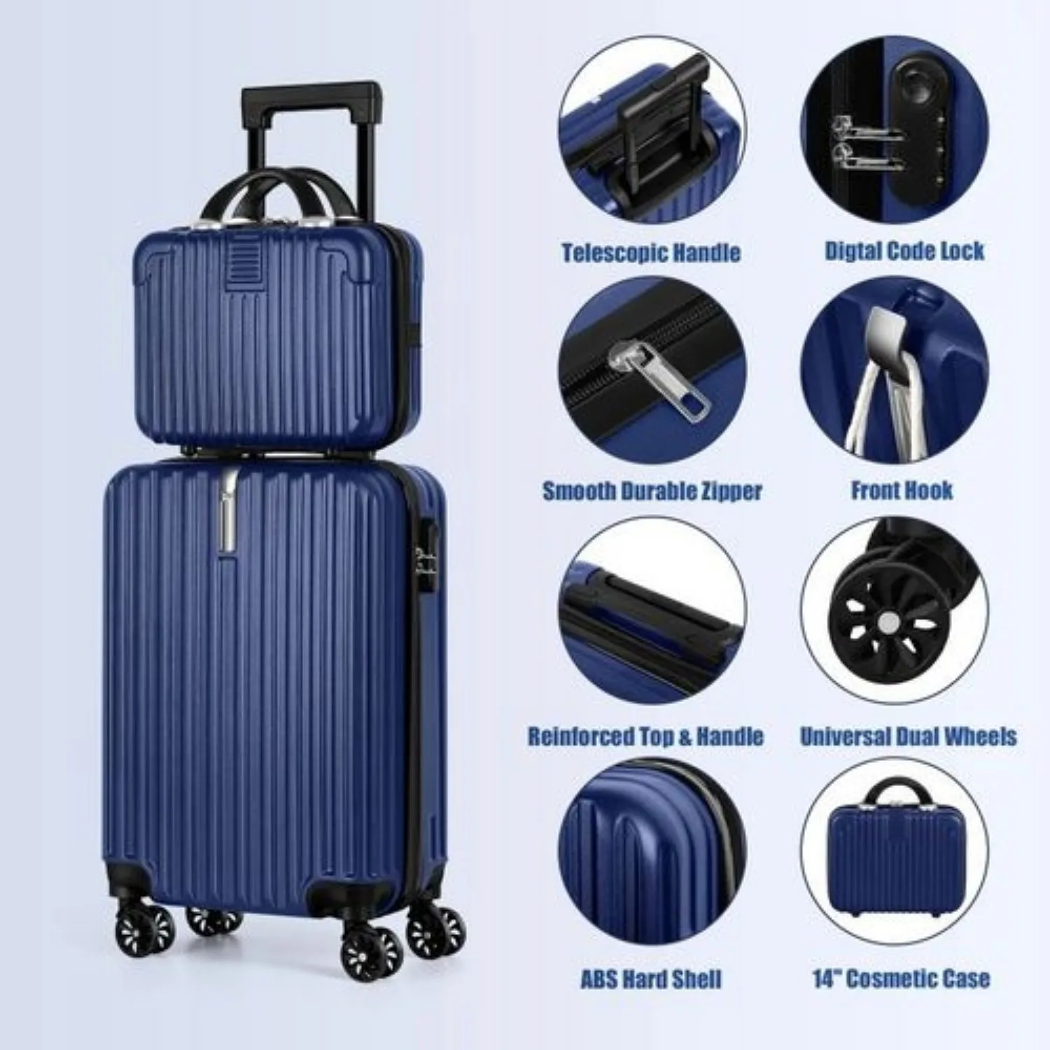2-Piece Hardshell Luggage Set (20"+14") - Nesting Spinner w/ 360° Wheels & TSA Lock, Lightweight Expandable for Family Travel