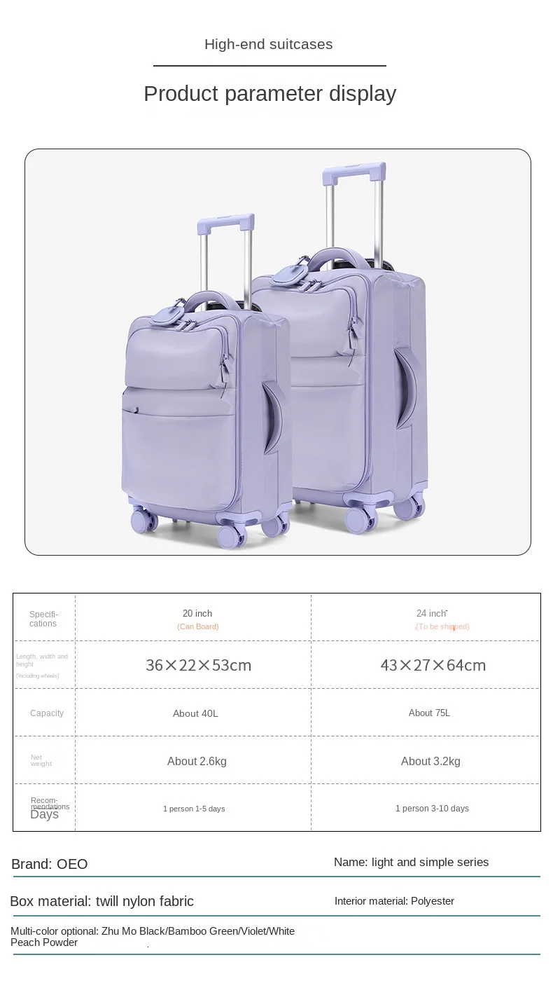 20/24/28 inch Ultra-light Luggage Large Capacity Oxford Cloth Waterproof Trolley Case Boarding Box Password Travel Bag