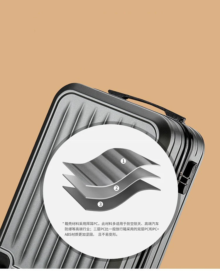 Constructed from sturdy PC material, this suitcase ensures durability and longevity.