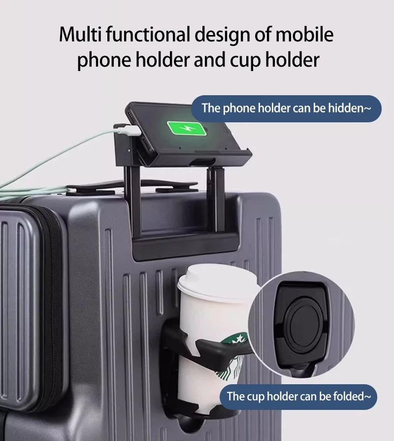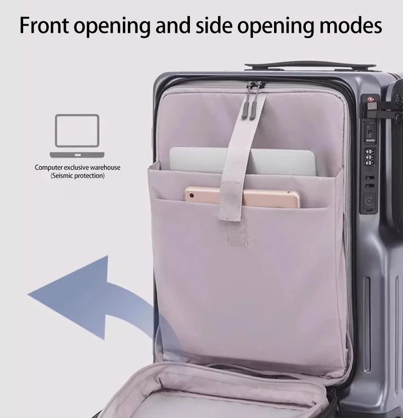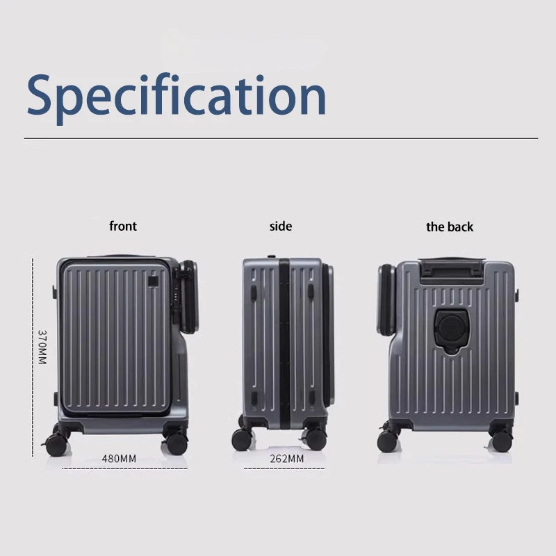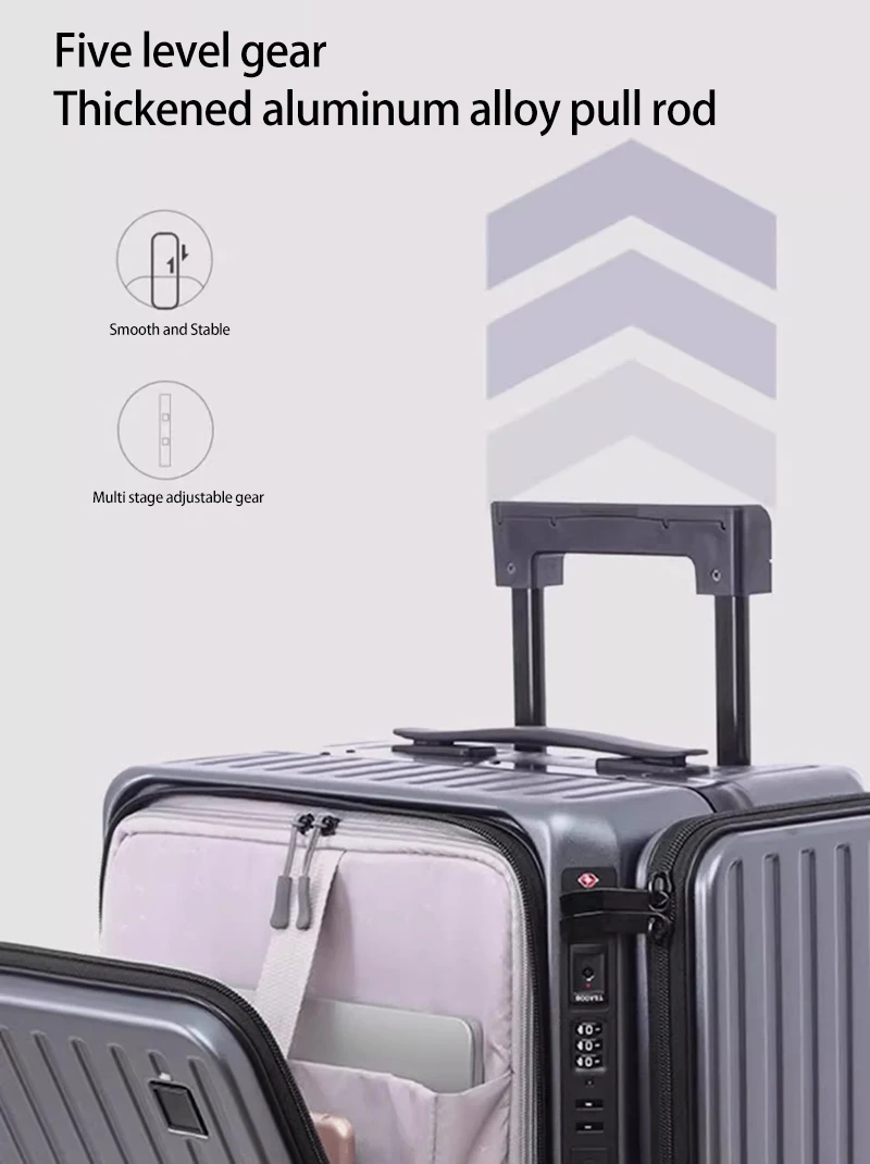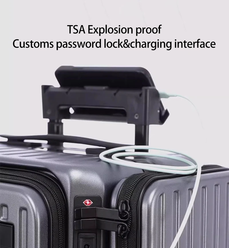 20 Inch Multi Functional Dual Opening Suitcase PC Luggage with USB Port Phone Holder Brake Wheels Travel Luggage for Men Women