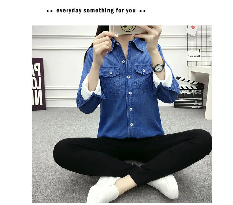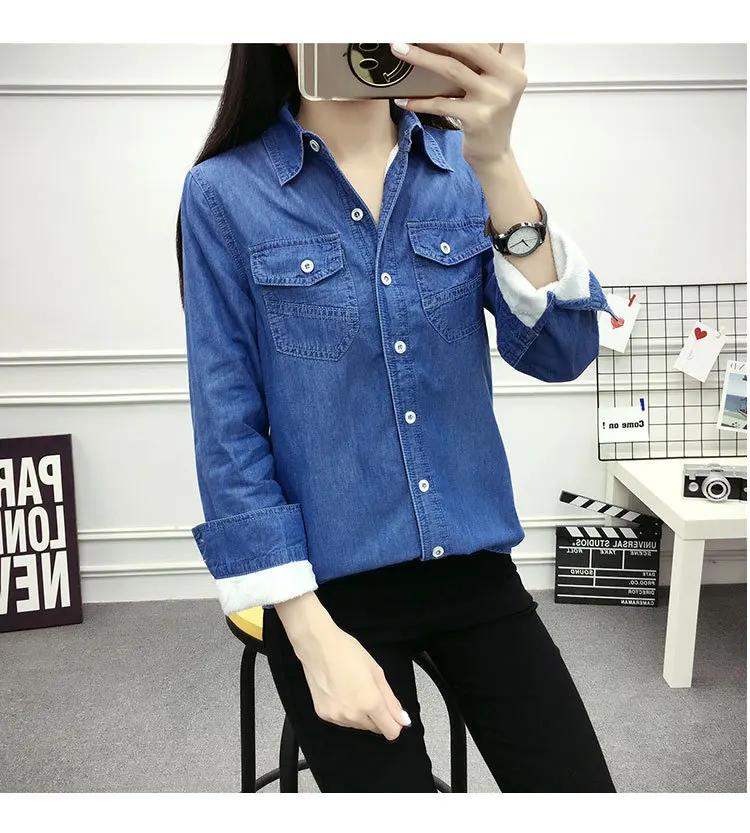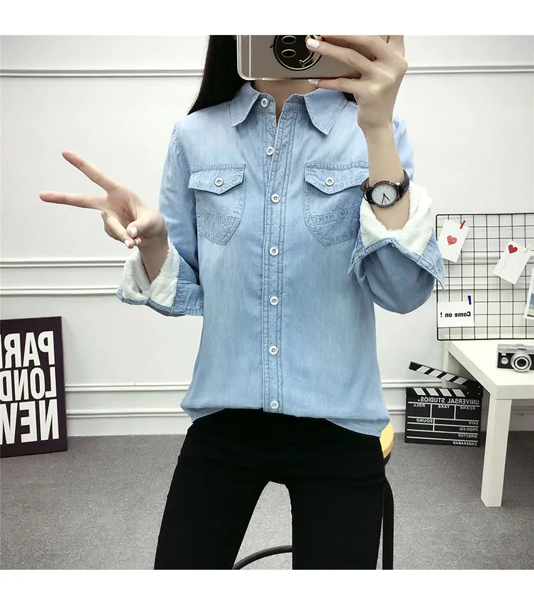 2022 Casual winter Autumn warm thick fleece denim Blouses Women Ladies Tops Women Blouses Long Sleeve Shirt clothe S-3XL