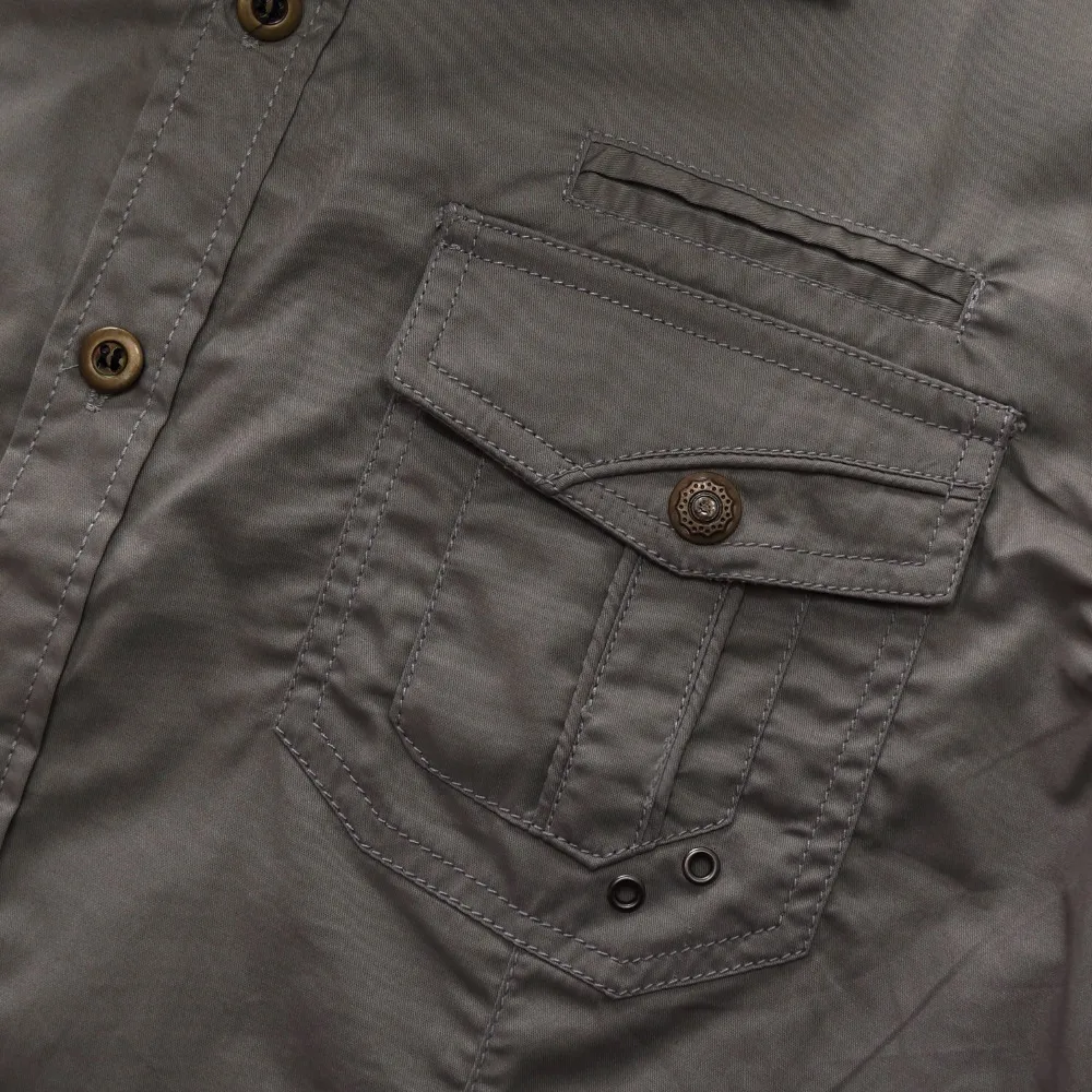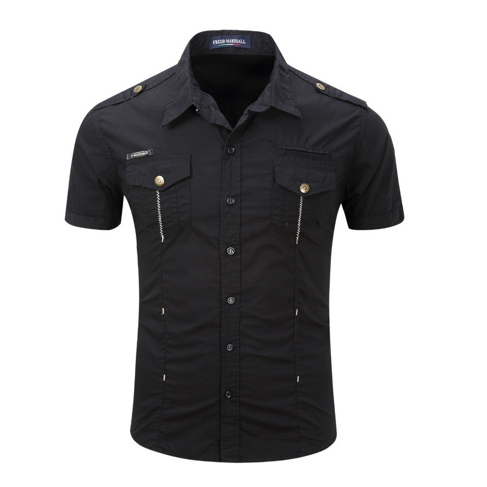 2022 New Arrive Mens Cargo Shirt Men Casual Shirt Solid Short Sleeve Shirts Multi Pocket Work Shirt Plus Size 100% Cotton