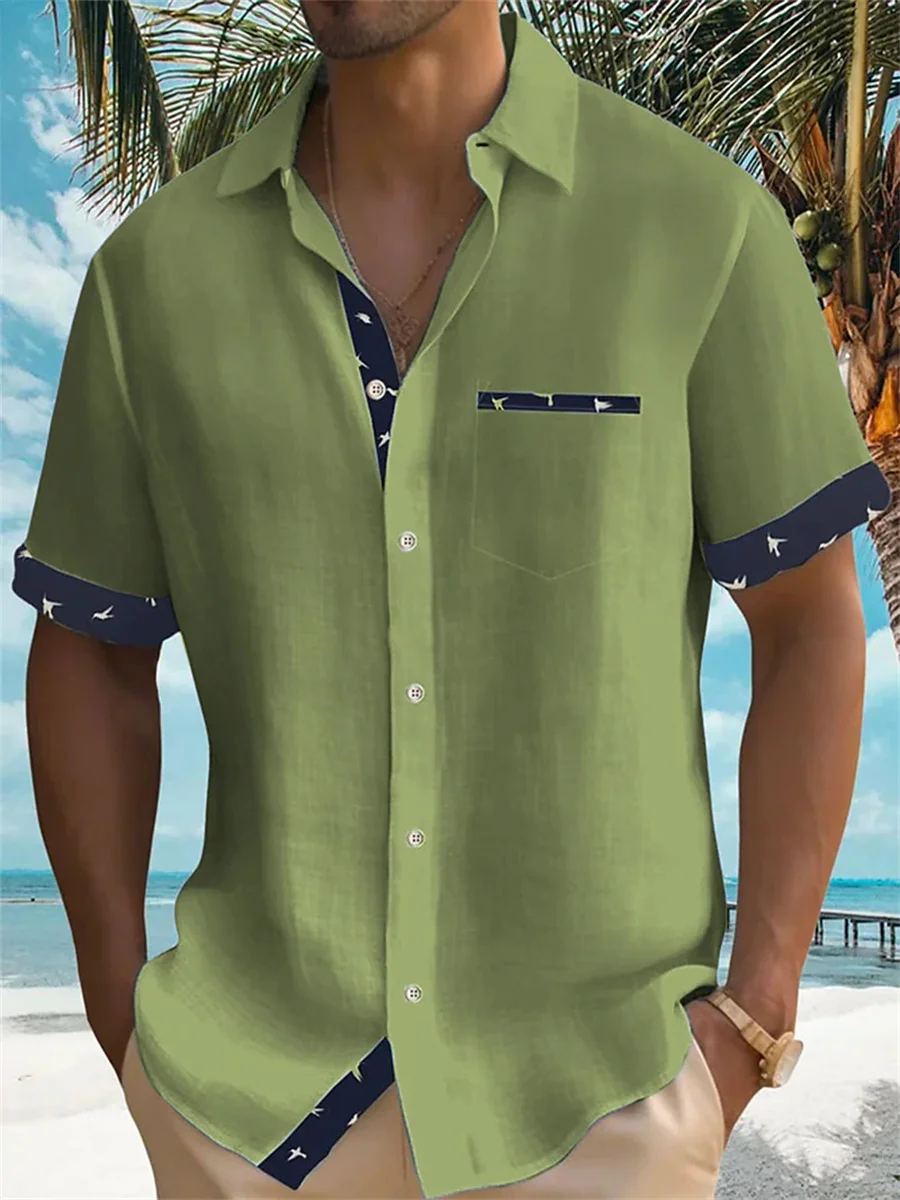 2023 solid color summer shirt men's Hawaiian shirt casual fashion street short sleeve beach holiday party men's pocket shirt 5XL