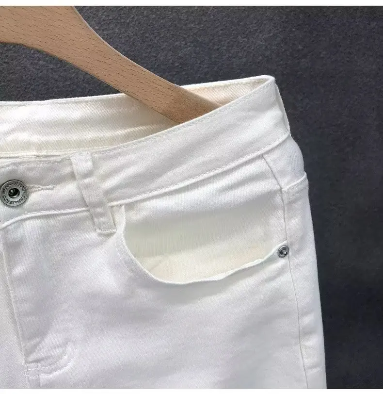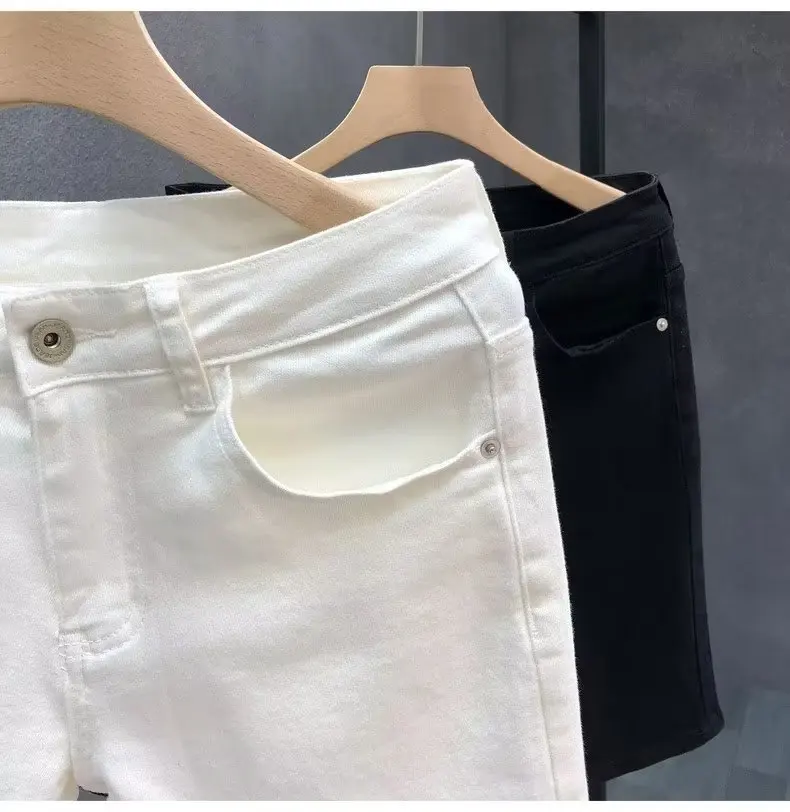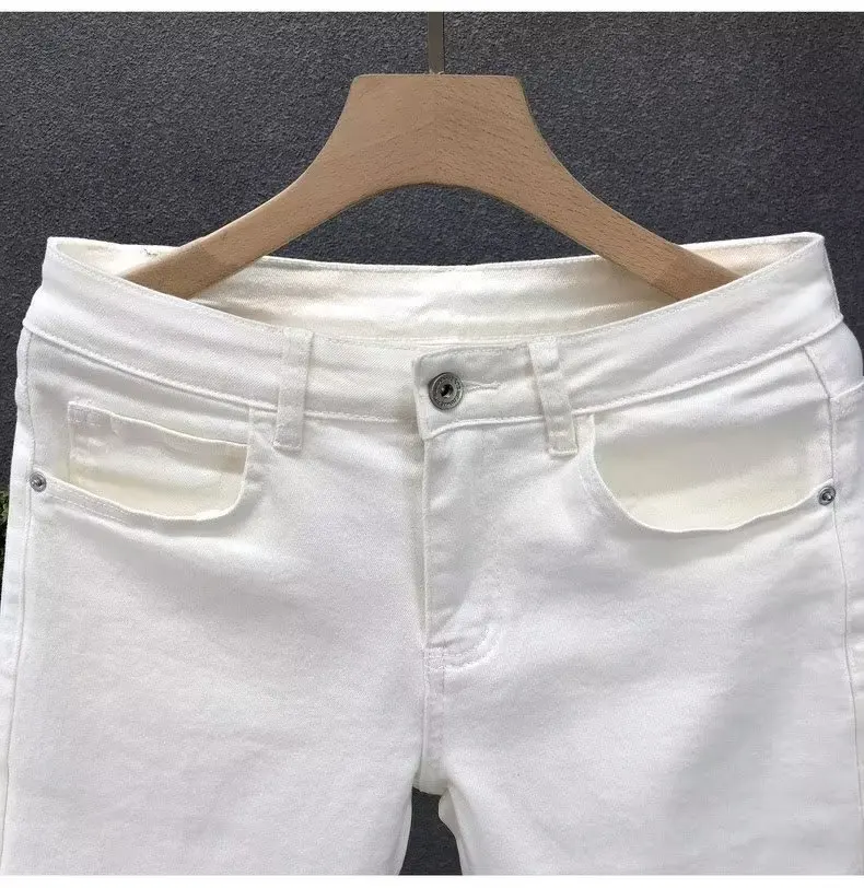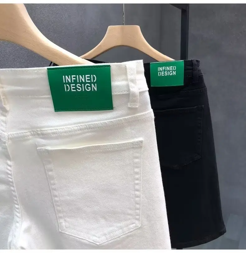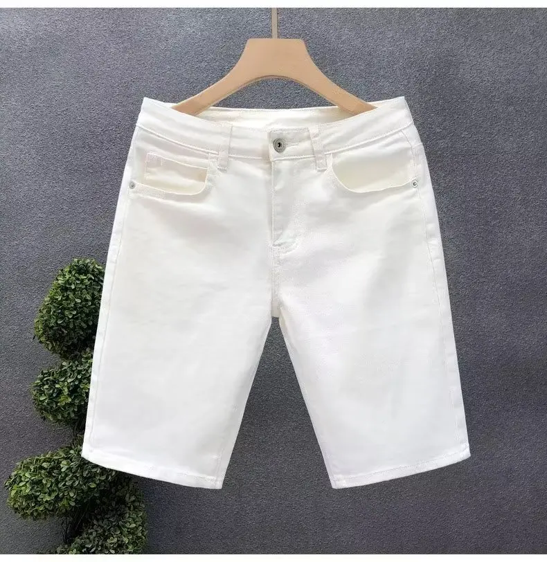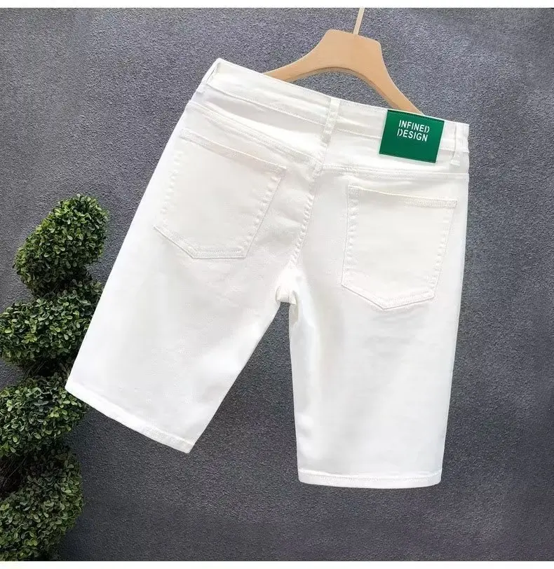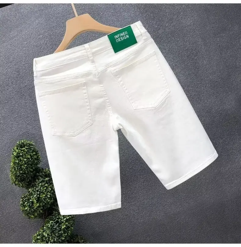 2023 Summer New Casual Denim Shorts Men Fashion White Knee Length Pants Straight Slim Classic Male Clothing Jeans Shorts