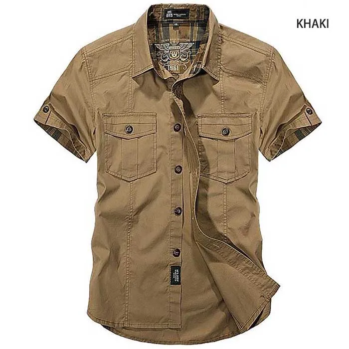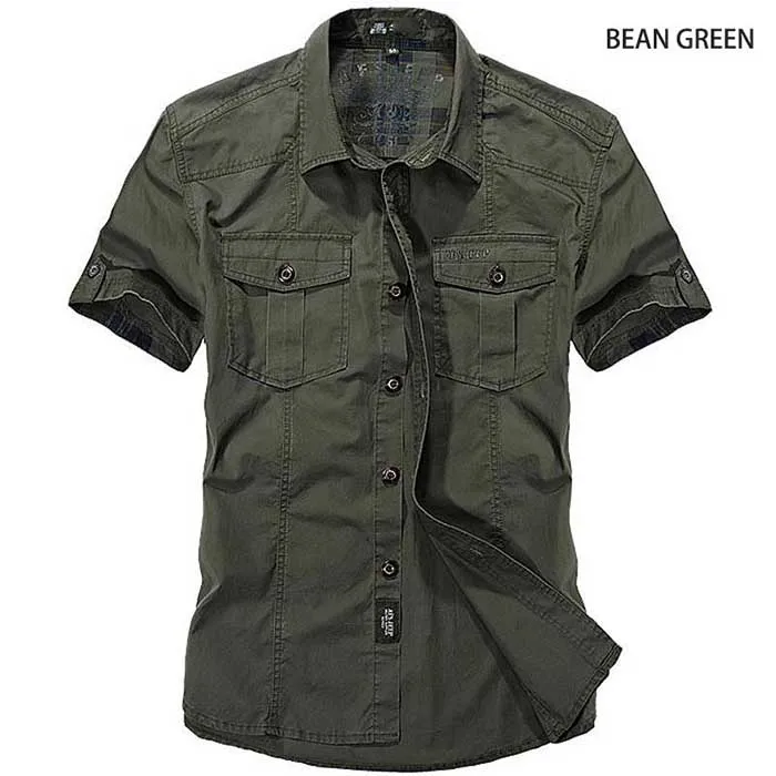 2023 Summer New Fashion Cotton Casual Shirts Men Loose Shirts Short Sleeve Turn-down Collar Military Style Male Tops